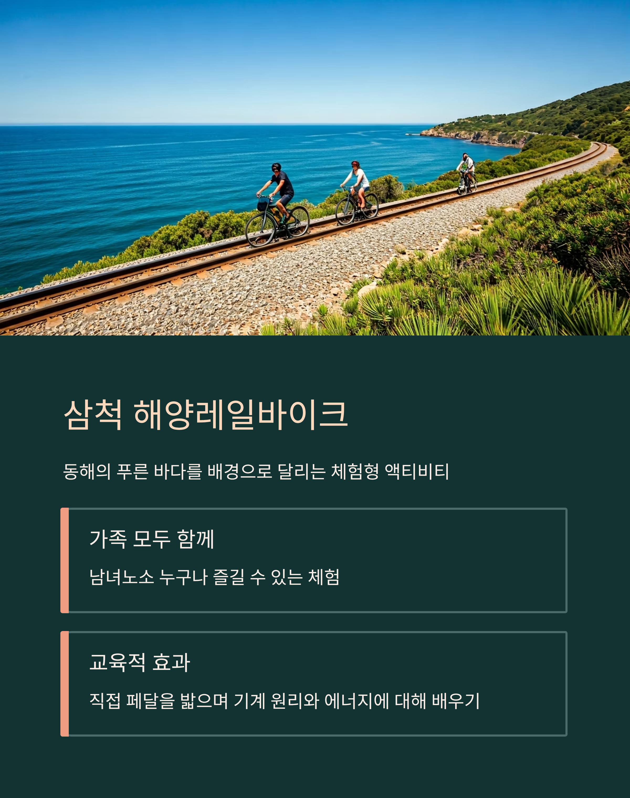 삼척 해양레일바이크는 동해의 푸른 바다를 배경으로