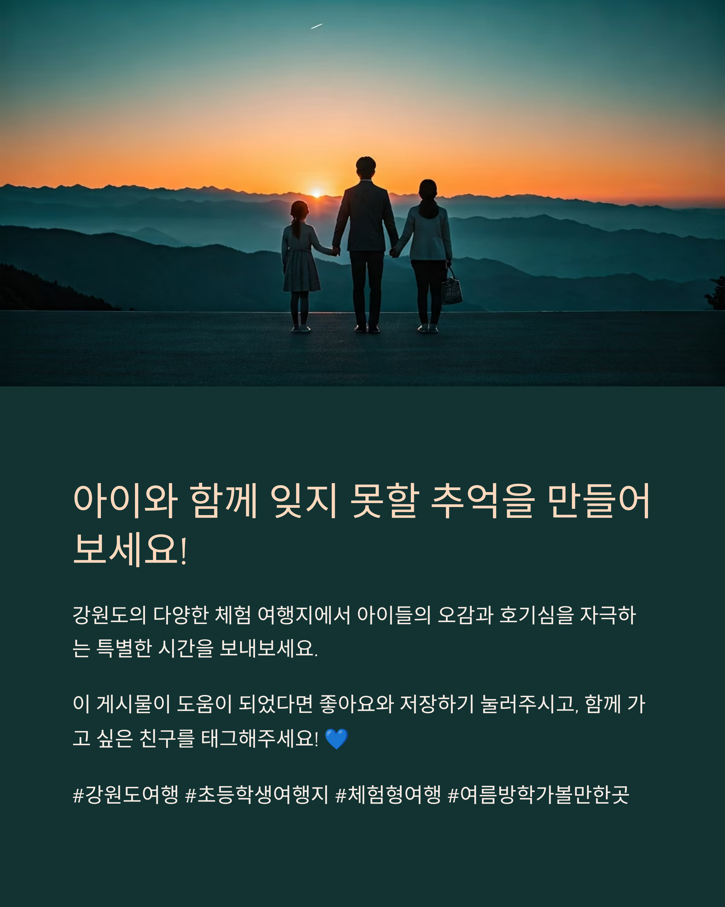 초등학생 자녀와 함께하는 여름방학 여행은 단순한 관광보다 체험 위주의 코스가 더욱 기억에 남습니다. 강원도는 자연환경과 연계한 체험 프로그램이 다양하게 마련돼 있어, 아이들의 오감과 호기심을 자극하기에 제격입니다. 이번 글에서는 7월에 떠나기 좋은 강원도 체험 여행 코스를 중심으로, 교육적이면서도 즐거운 여행지들을 소개합니다.