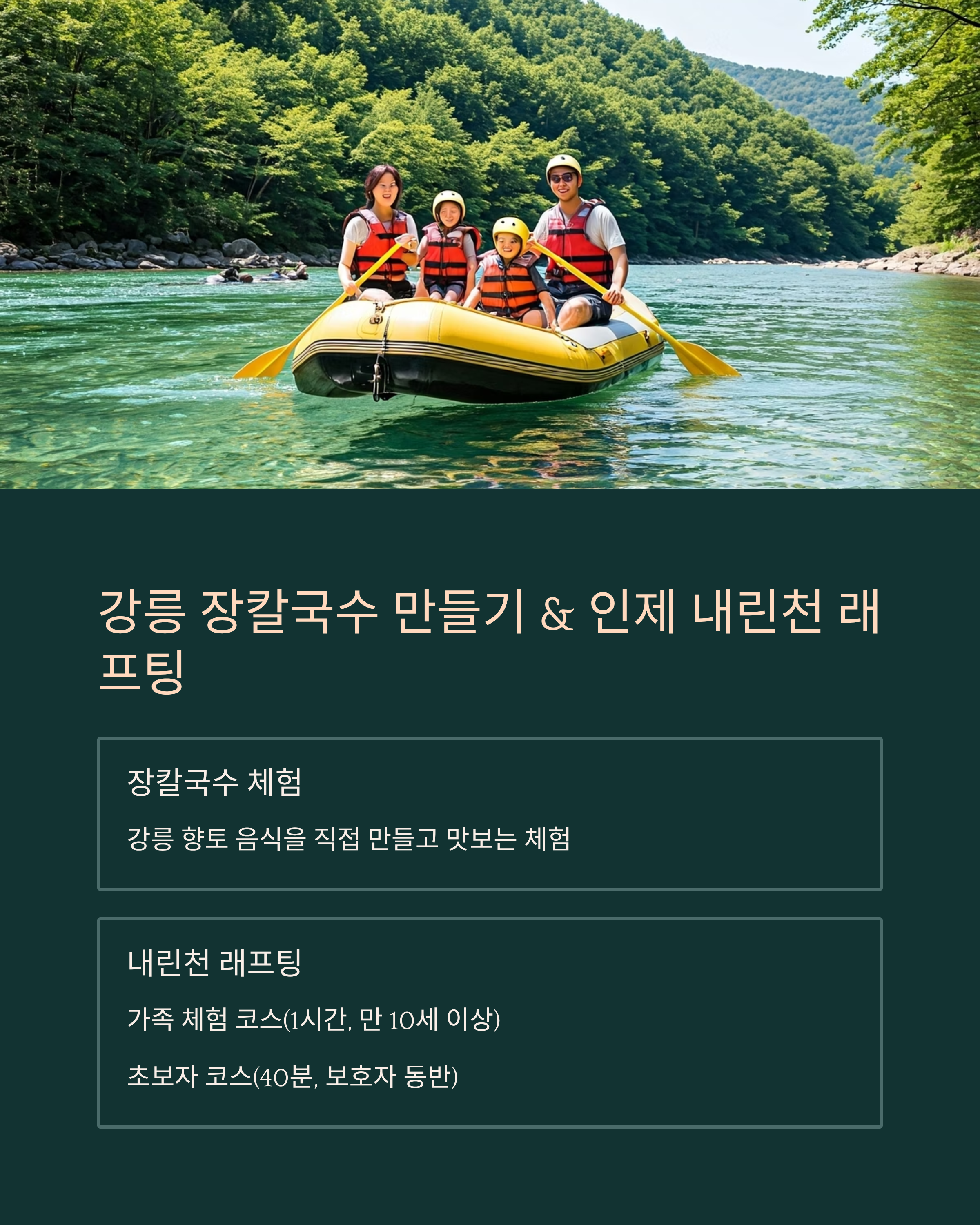 초등 고학년 이상이라면 인제 내린천 래프팅 체험도 추천합니다.