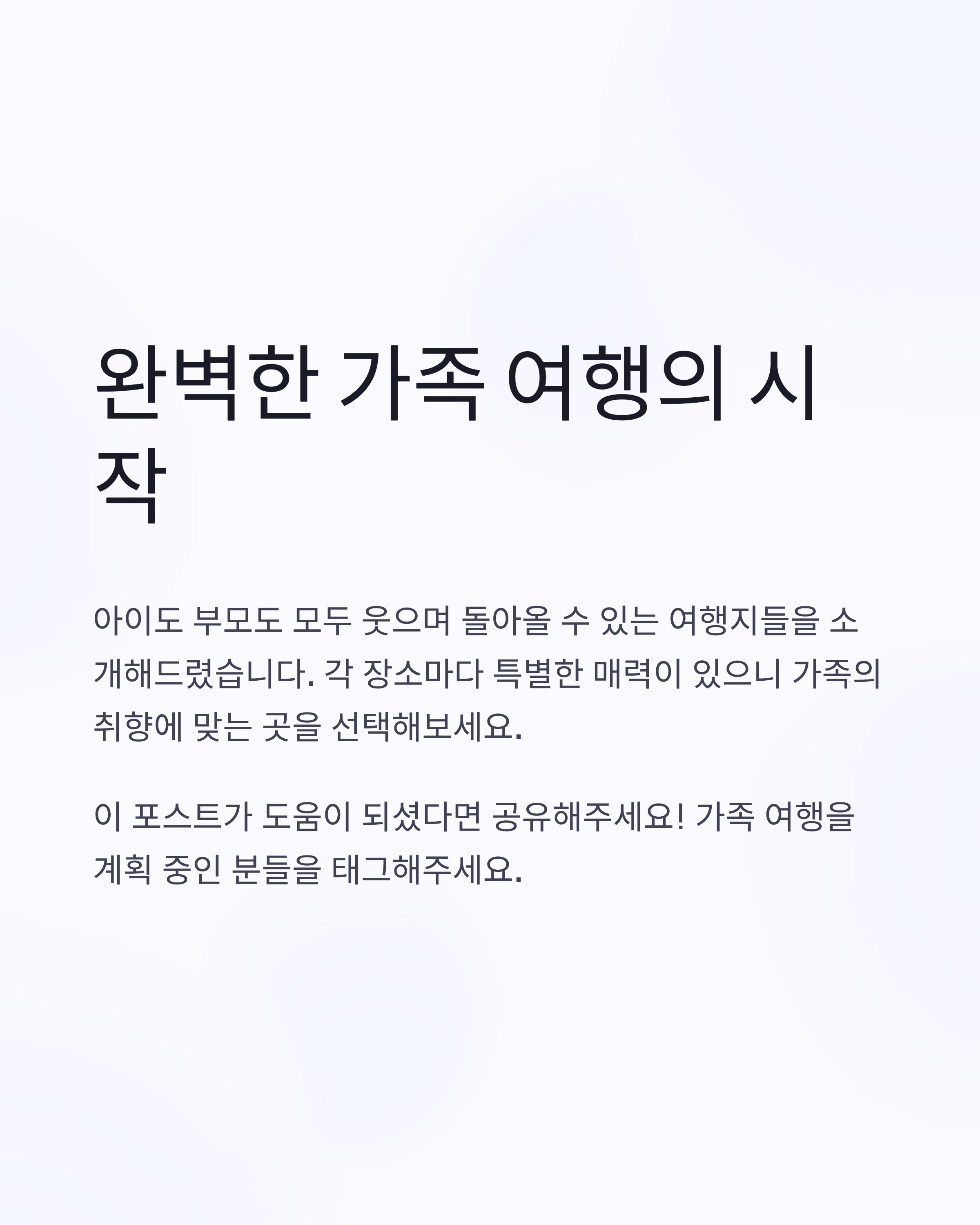 가족 여행을 계획할 때 가장 중요한 건 바로 모두의 만족입니다. 아이들은 신나게 뛰놀 수 있어야 하고,