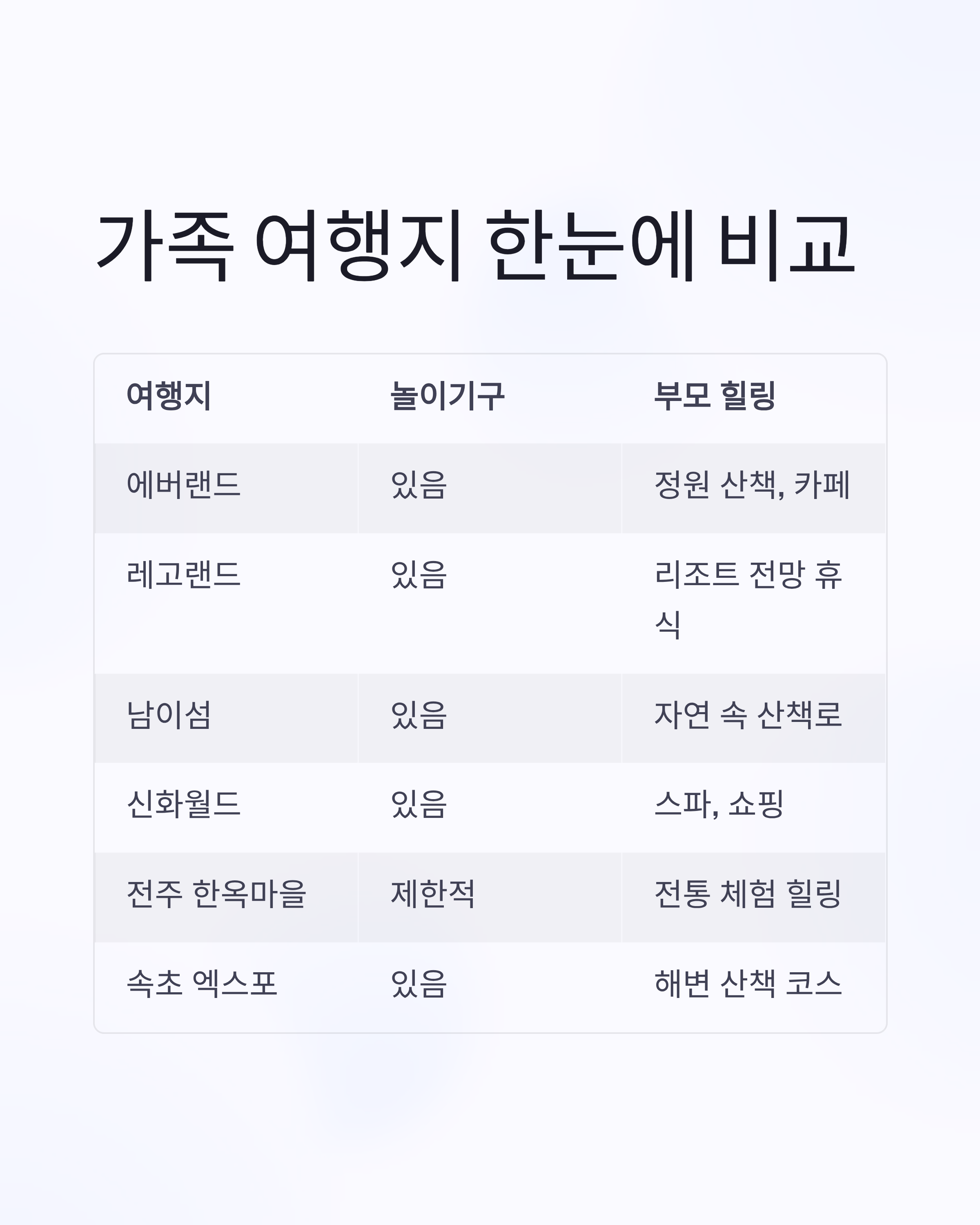 여행지 놀이기구 유무 부모 힐링 요소