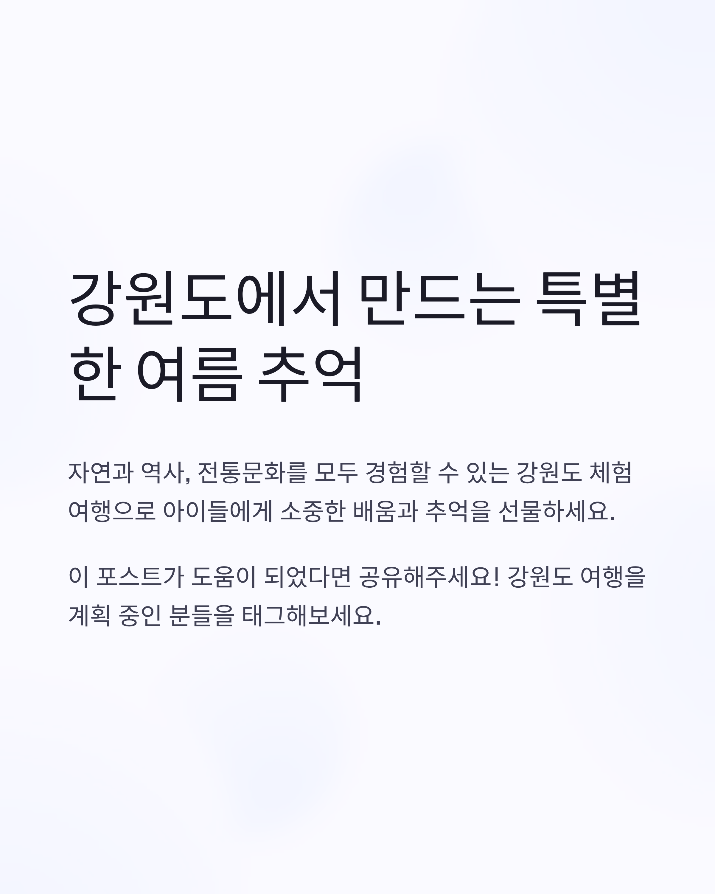 이번 글에서는 아이와 함께하기 좋은 강원도의 8월 체험형 여행지를 소개합니다.