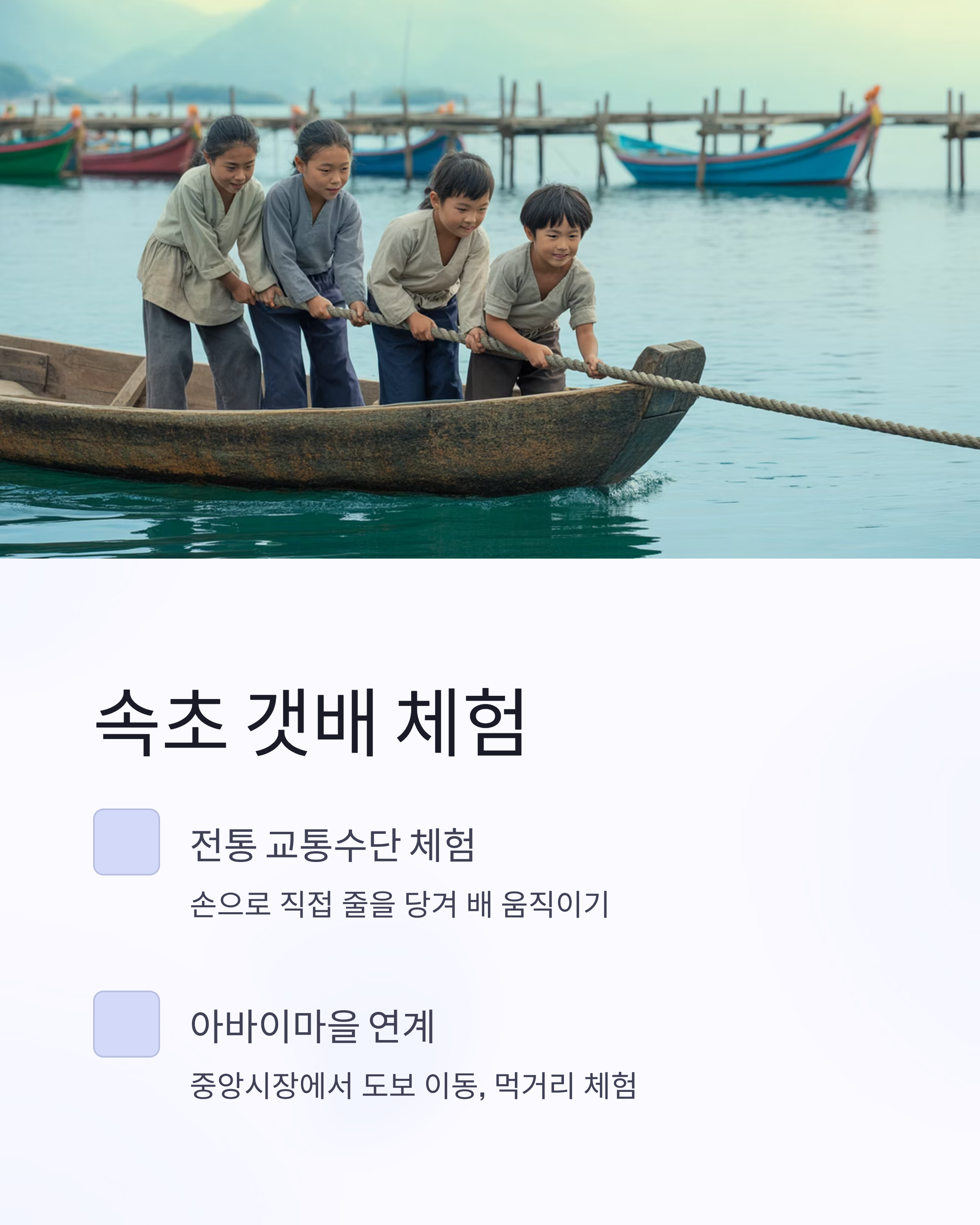 배를 움직이는 과정은 색다른 재미를 주며, 근처 아바이마을과 연계해