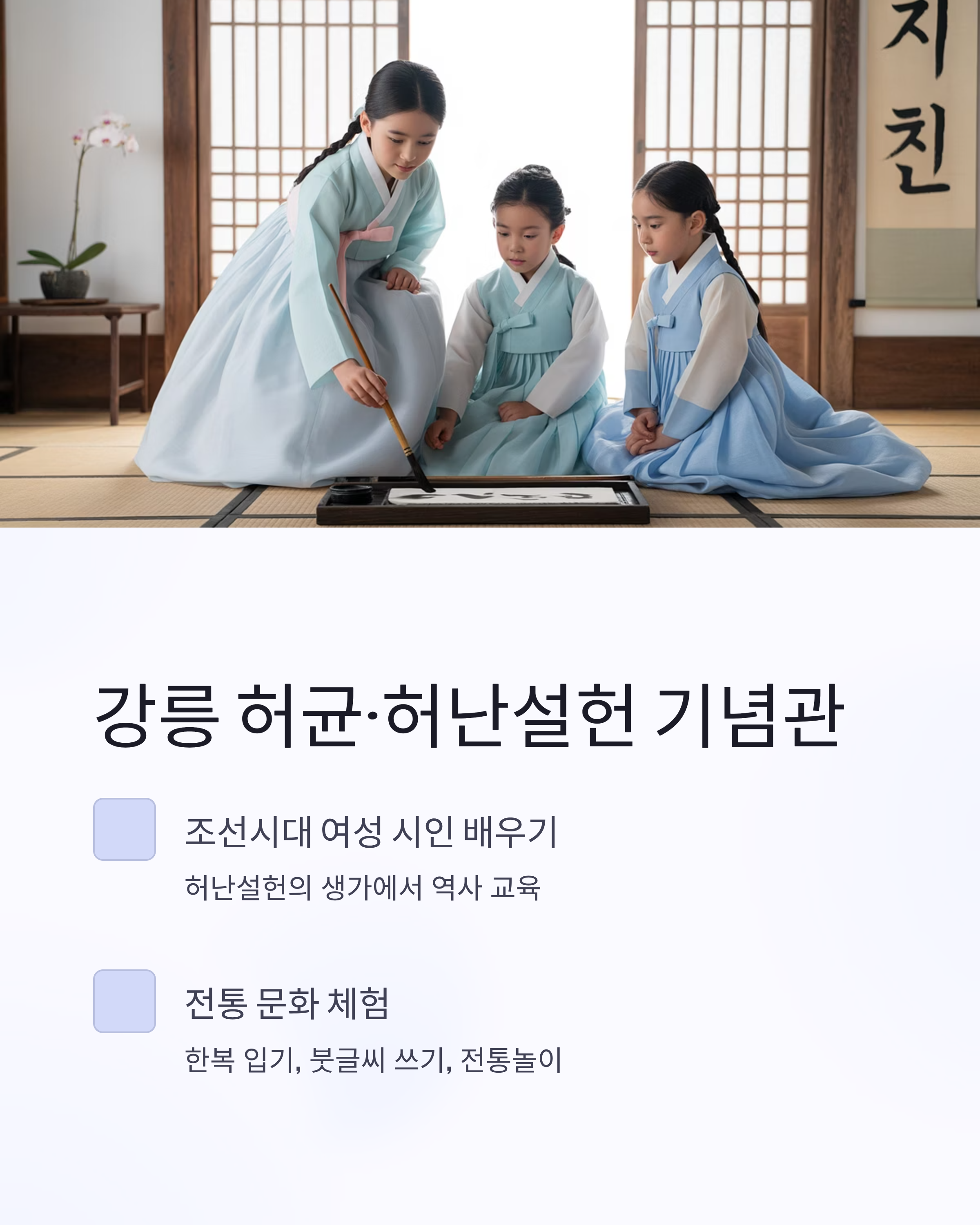 허난설헌의 생가를 중심으로 꾸며진 기념관에서는 조선시대의 여성 시인과