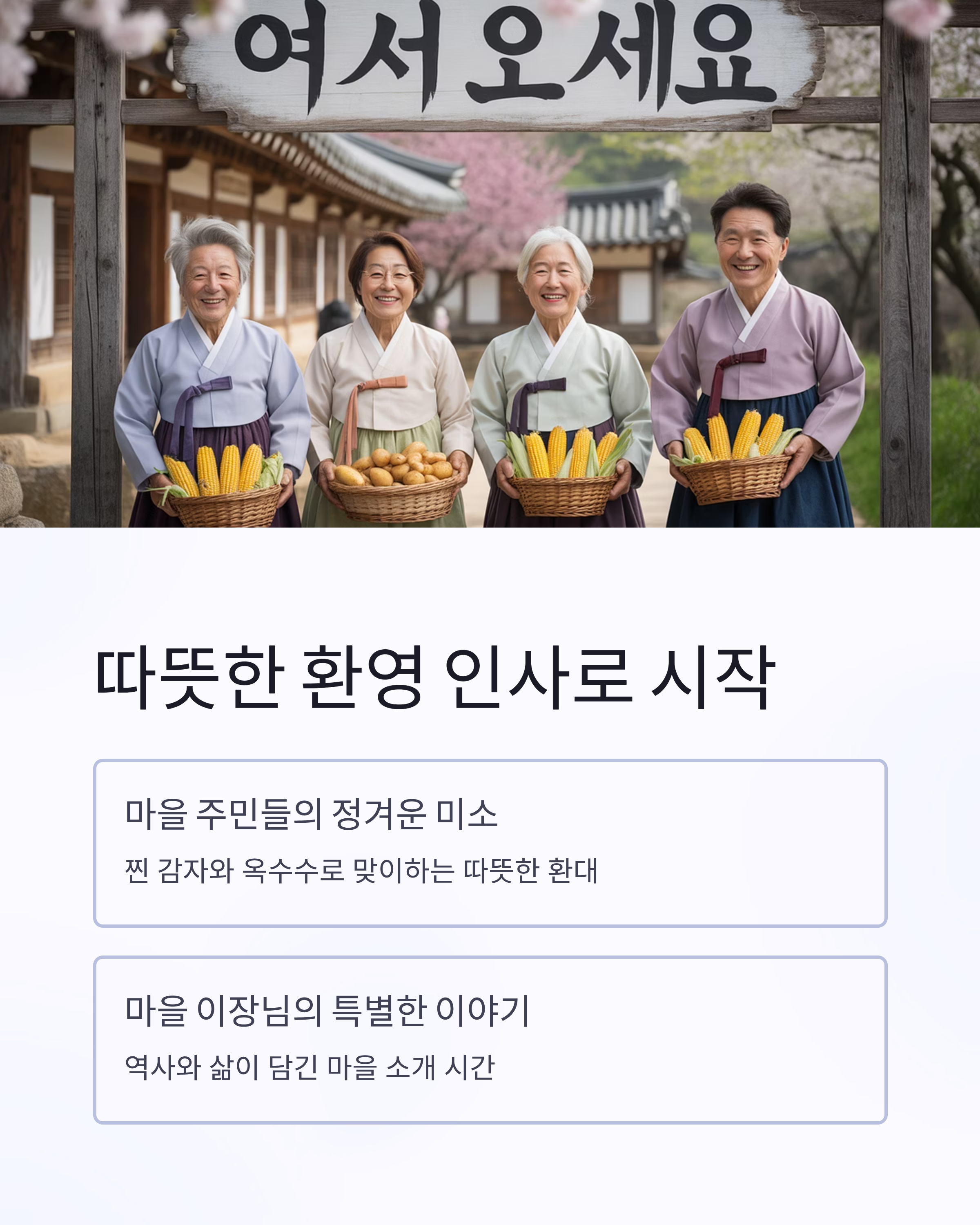 마을 입구에 도착하니, 주민분들이 따뜻하게 맞이해주셨습니다.