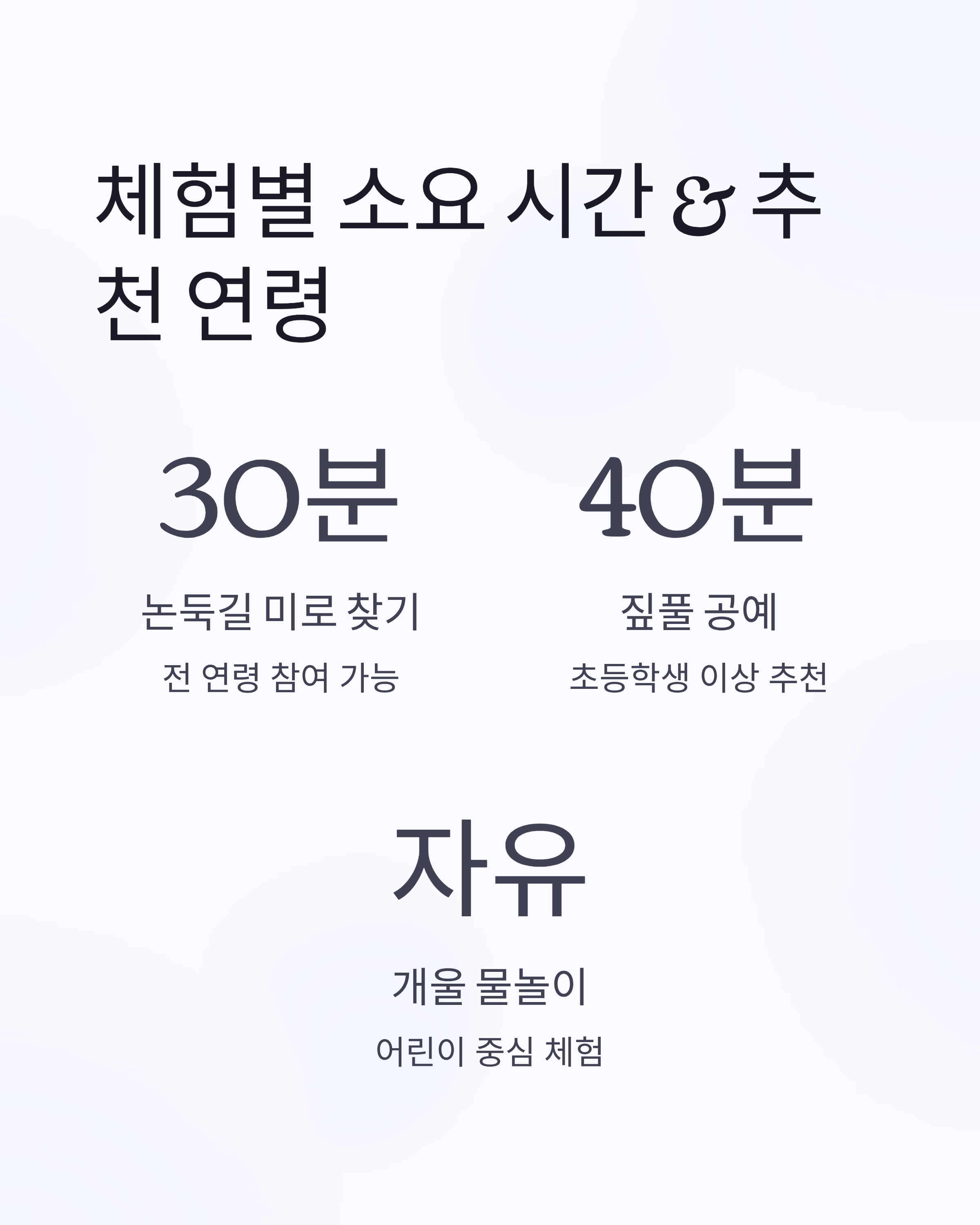 | 논둑길 미로 찾기 | 약 30분 | 전 연령 |