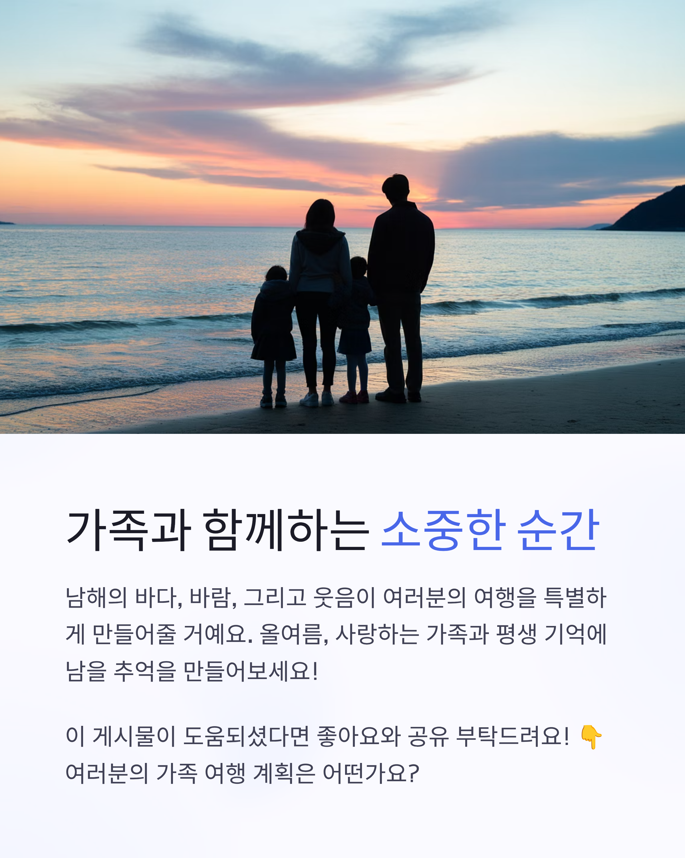 남해의 바다, 바람, 그리고 웃음이 여러분의 여행을 더욱 특별하게 만들어줄 거예요.