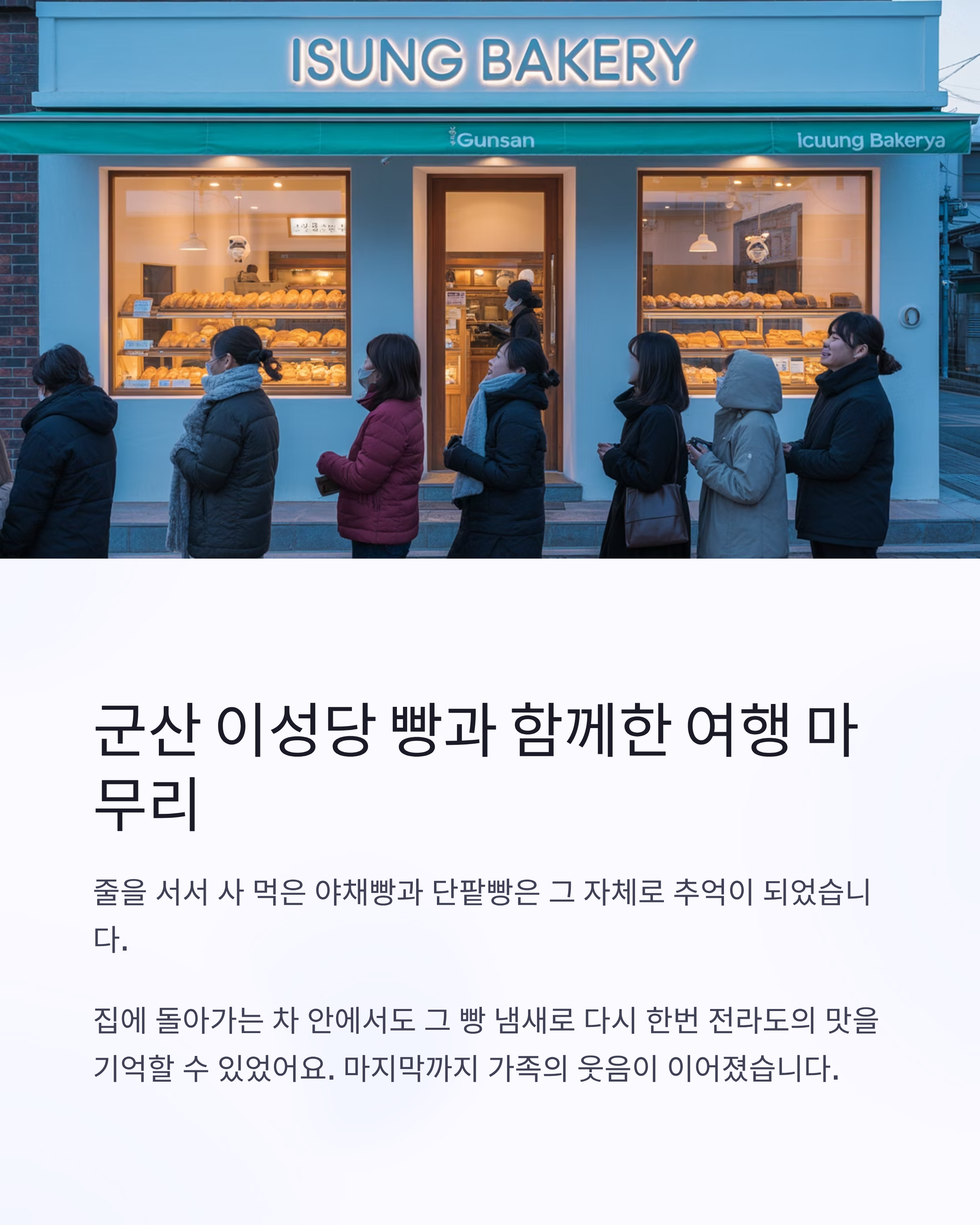 집에 돌아가는 차 안에서도 그 빵 냄새로 다시 한번 전라도의 맛을