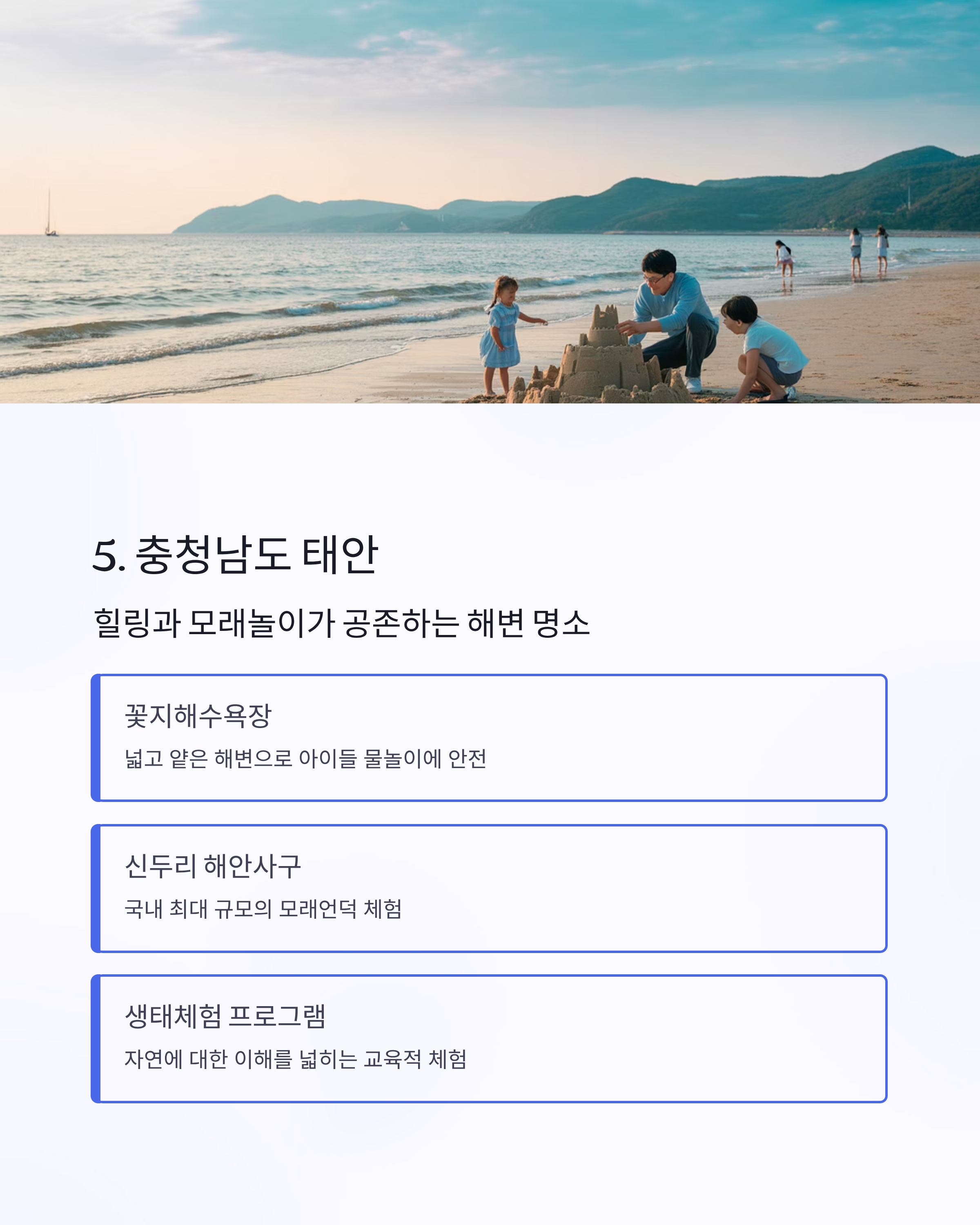 태안은 조용하고 넓은 해변이 많아 아이들과