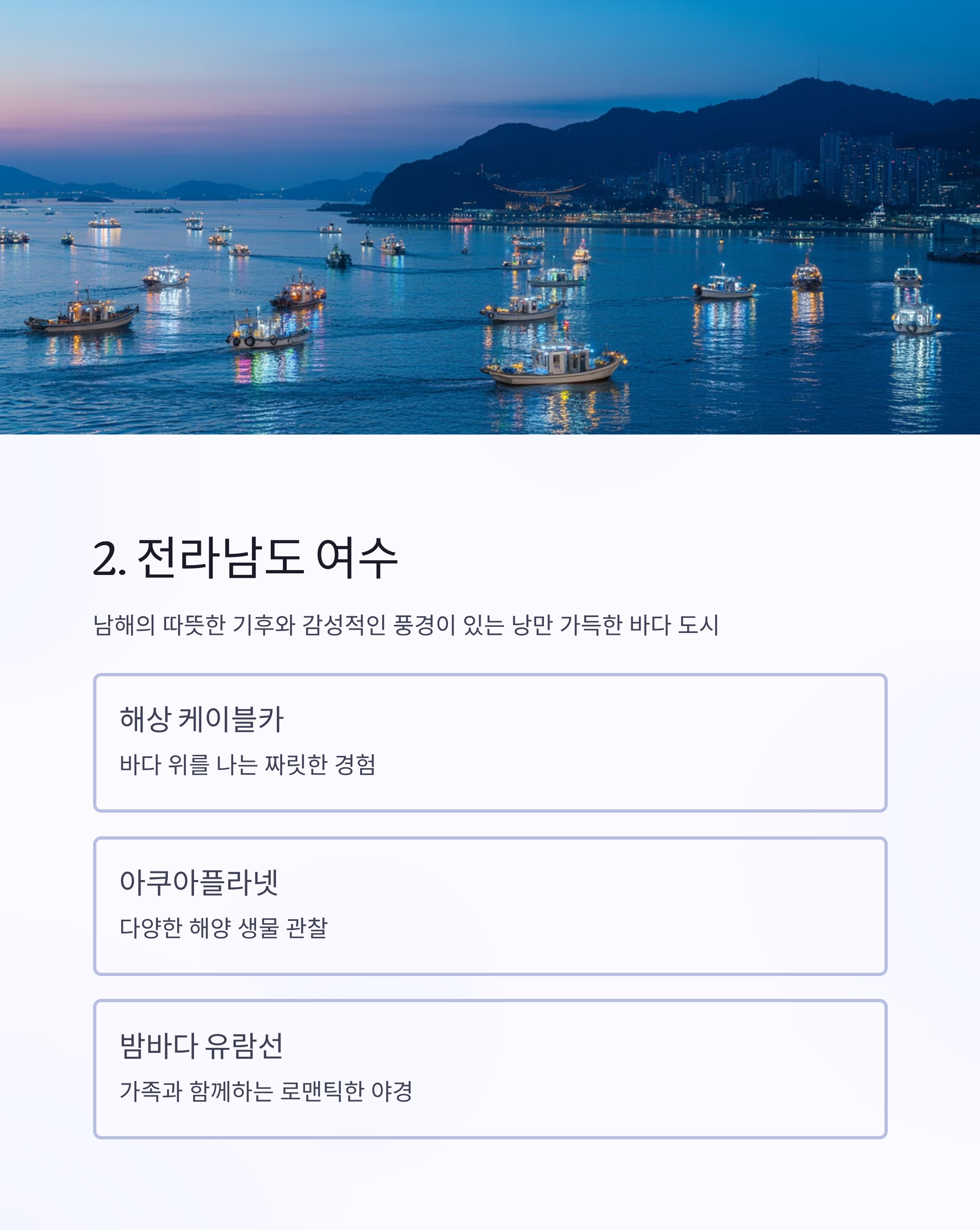 특히 여수 밤바다를 배경으로 한 유람선 체험은