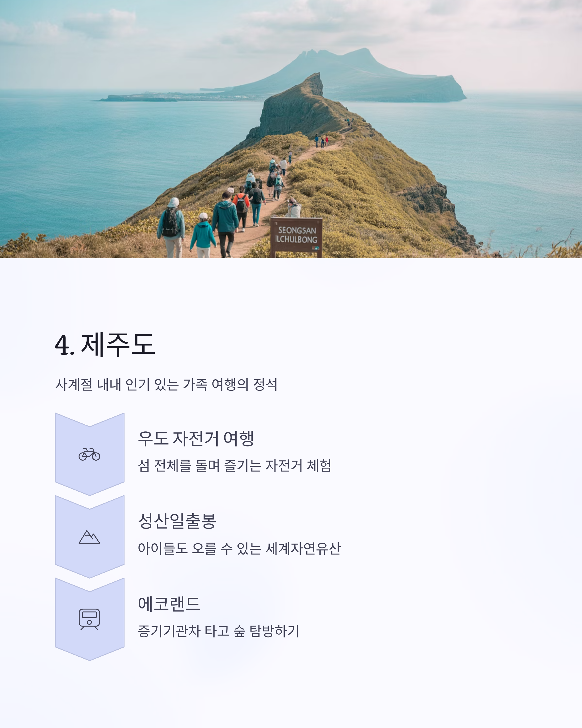 제주도는 한국을 대표하는 가족 여행지로,
