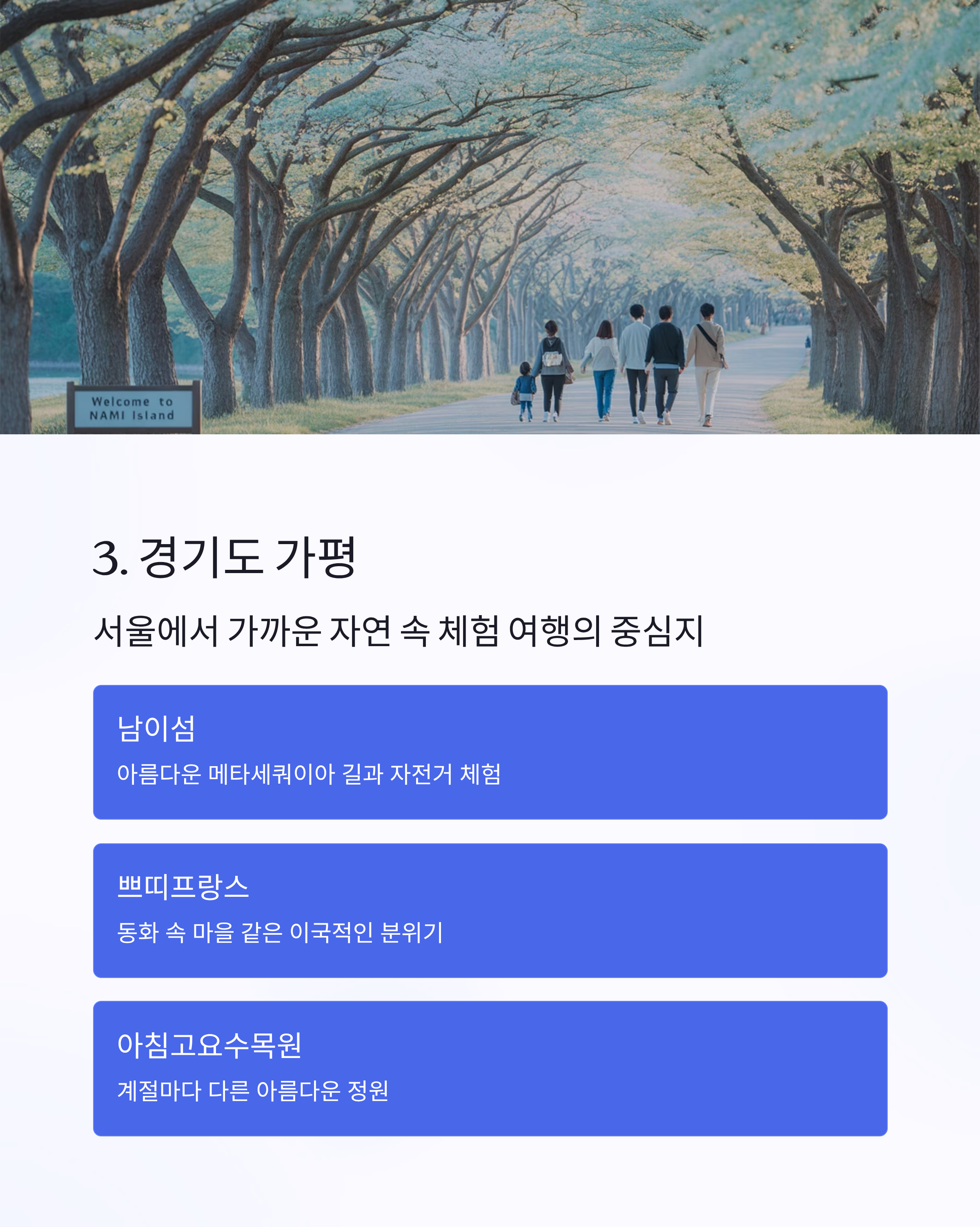 3. 경기도 가평 – 자연 속 체험 여행의 중심지