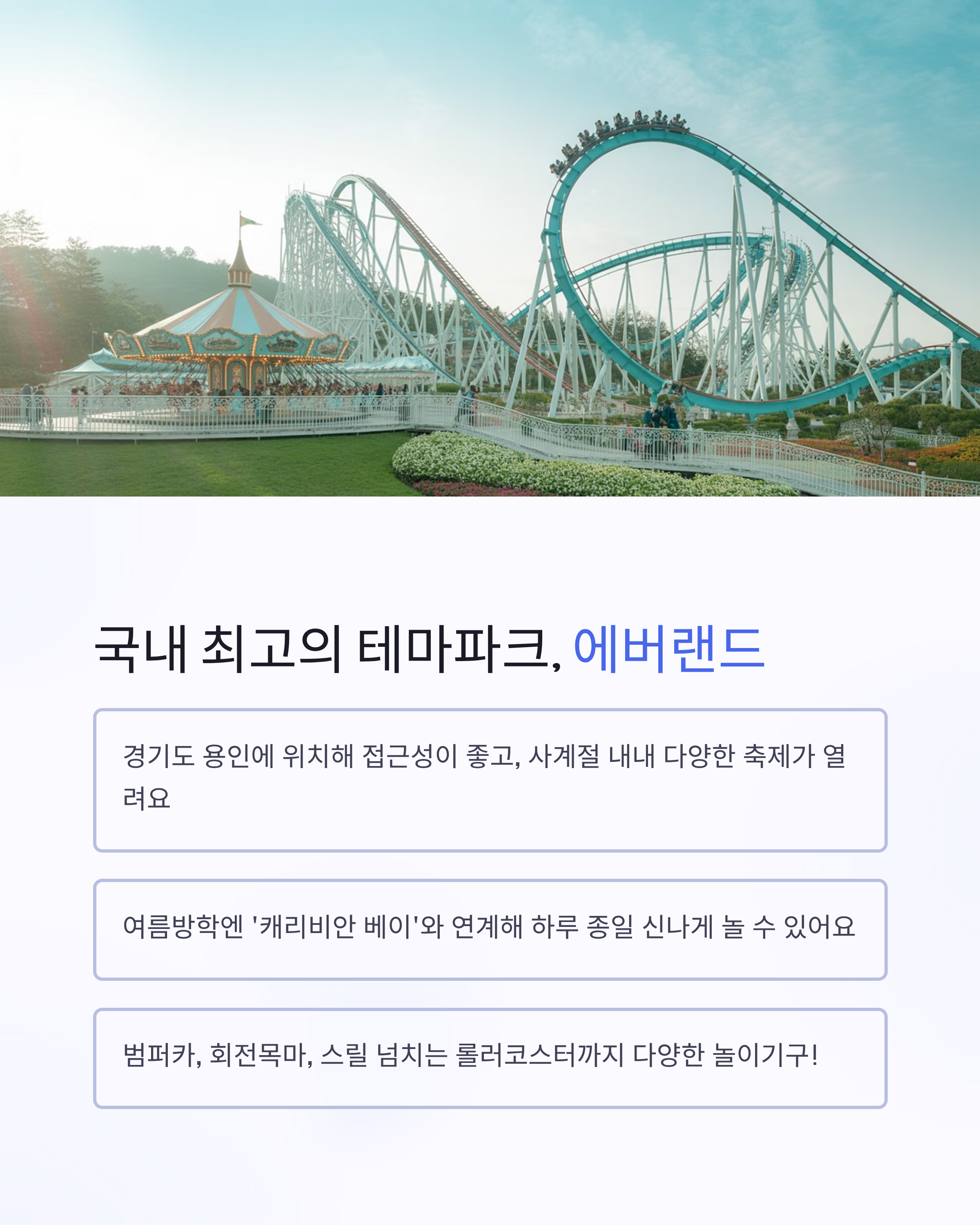 아이들뿐만 아니라 부모님들도 함께 즐기기 좋은 대표 테마파크 에버랜드!