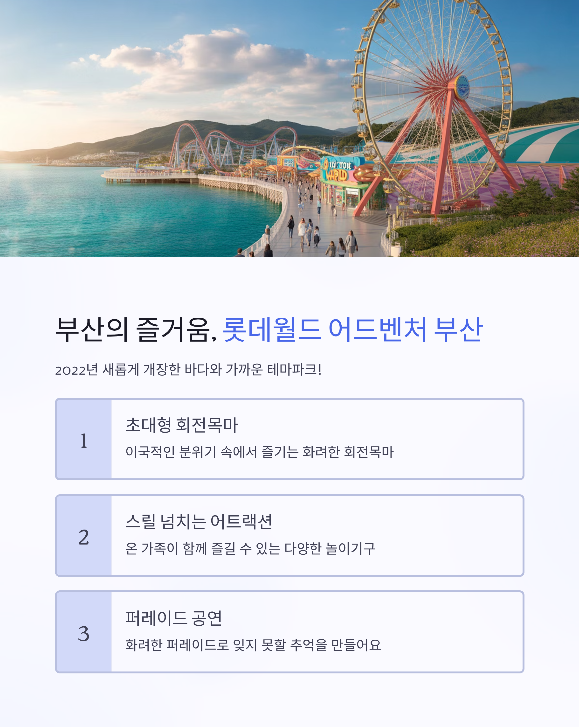 2022년 새롭게 개장한 부산 롯데월드 어드벤처는 바다와 가까운 테마파크로,
