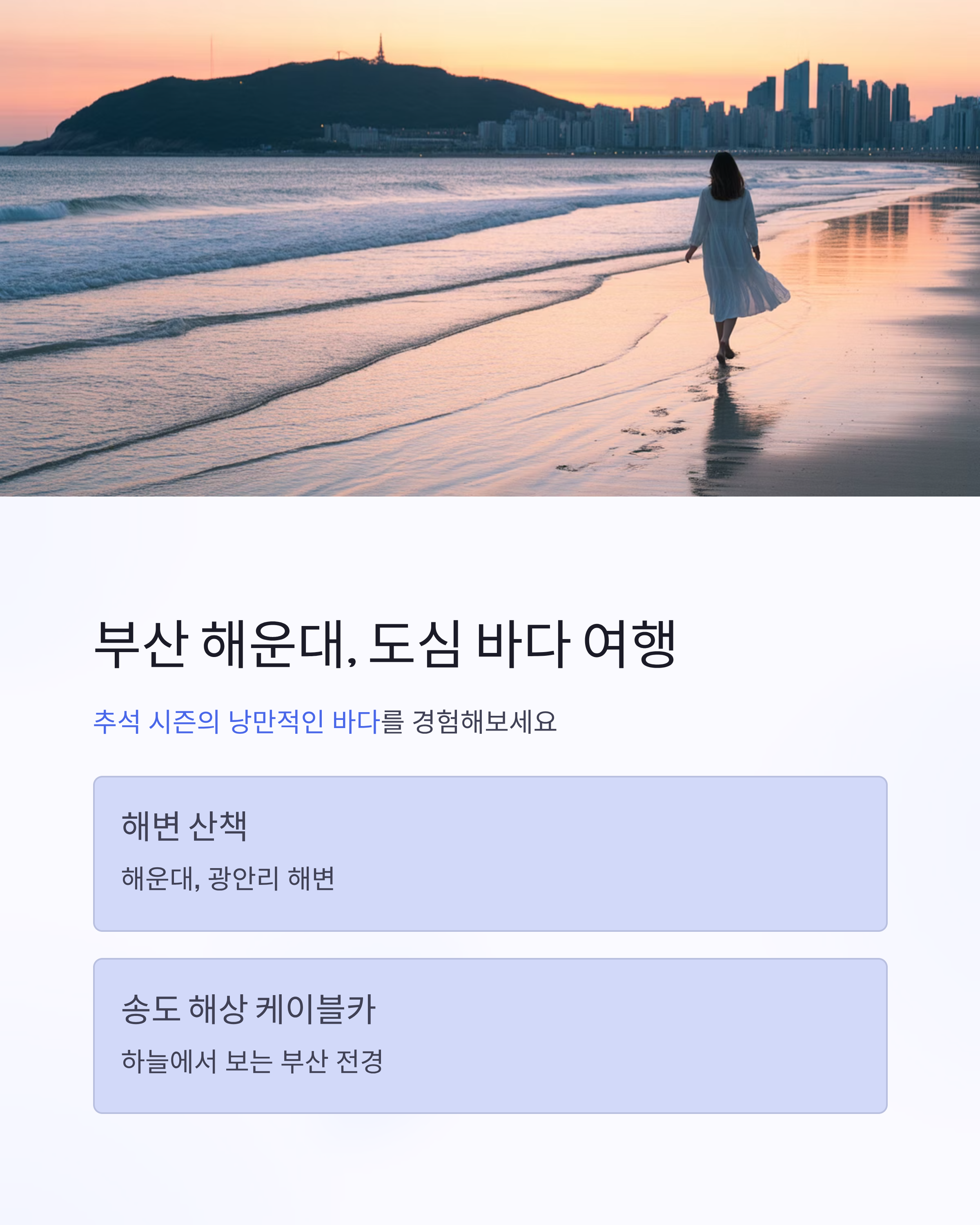 | 부산 | 젊은 가족 | 해운대, 케이블카, 도심형 여행 |