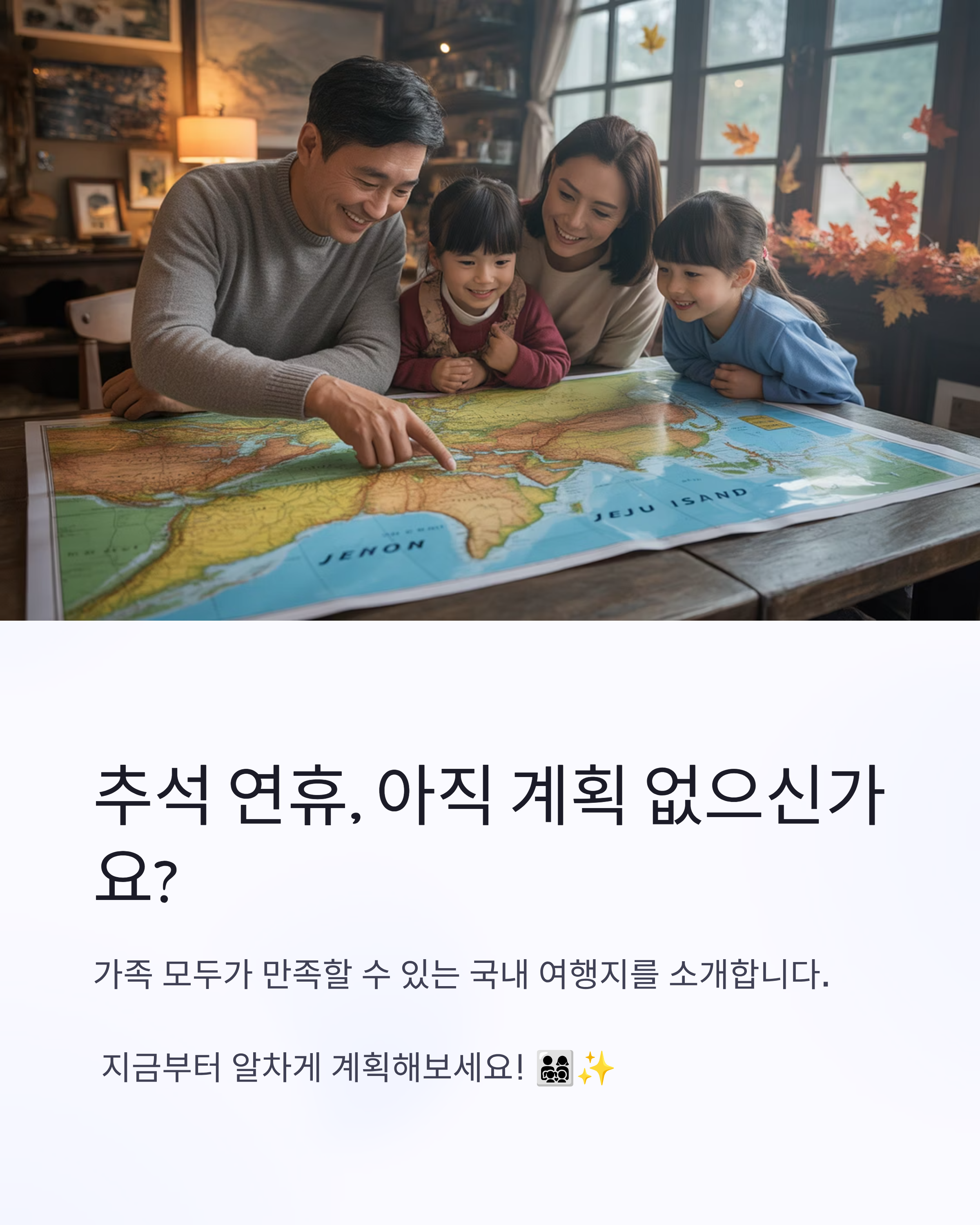 추석 연휴가 코앞인데도 아직 여행 계획을 못 짜셨다면, 이 글이 도움이 될 거예요. 명절이면 바쁜 일정 속에서도 잠깐의 여유는 꼭 필요하잖아요. 가족 모두가 만족할 수 있는 국내 여행지를 중심으로 소개해드릴게요. 부모님부터 아이들까지 즐거운 시간을 보낼 수 있는 장소 위주로 추천해드립니다. 지금이라도 충분히 알차게 계획할 수 있으니 걱정 마세요.