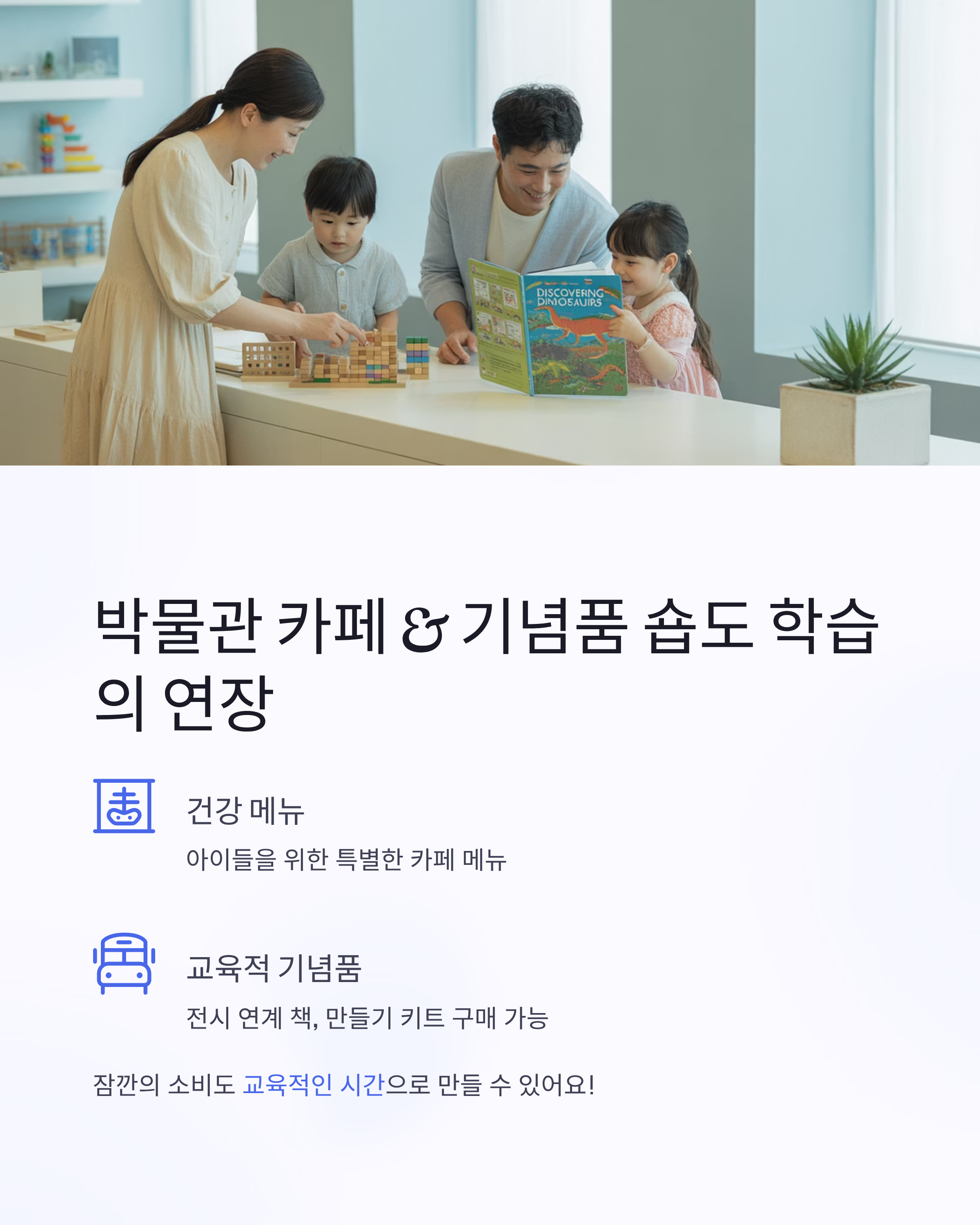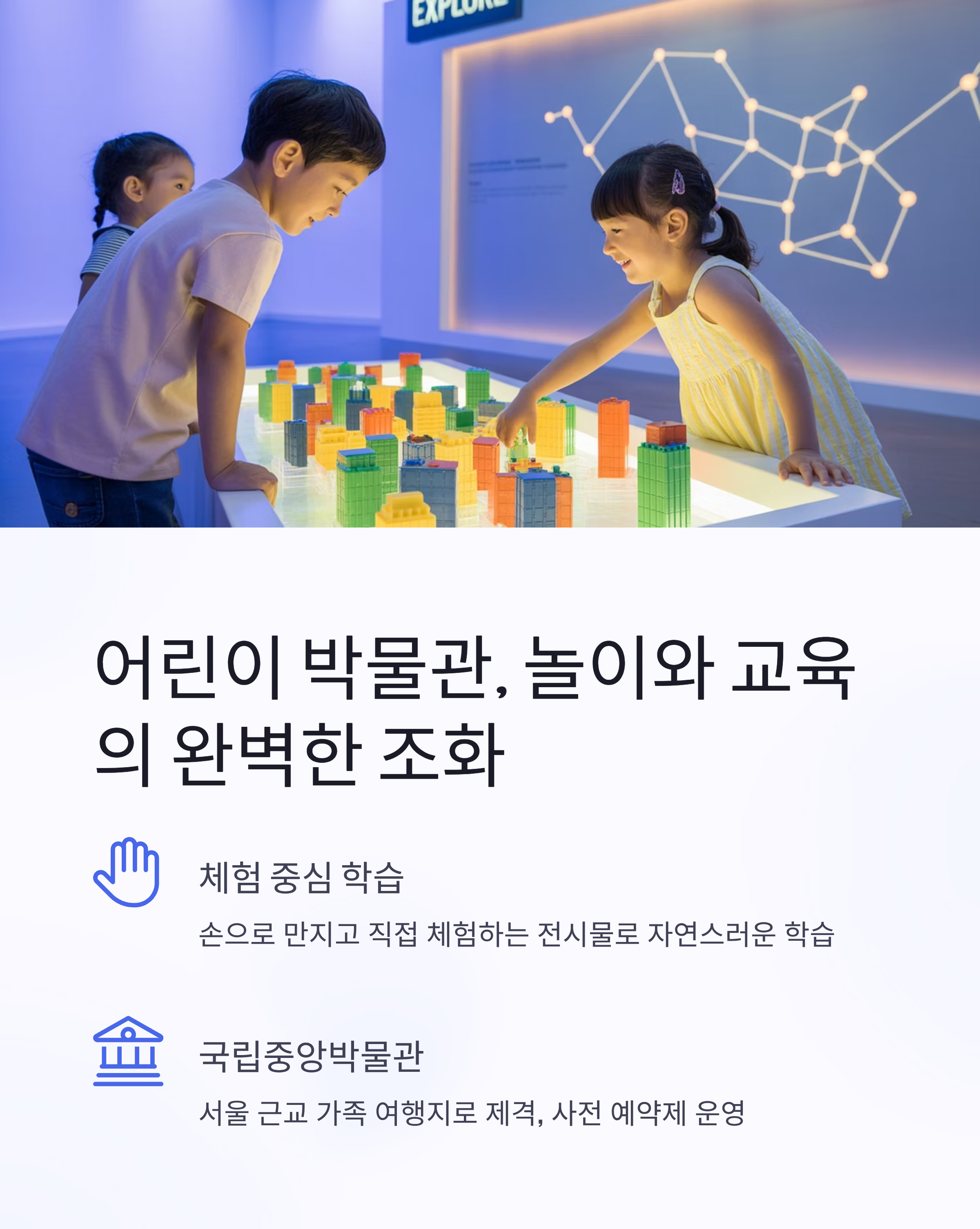 어린이 박물관은 단순한 전시가 아니라, 체험 중심의 학습 공간이에요.