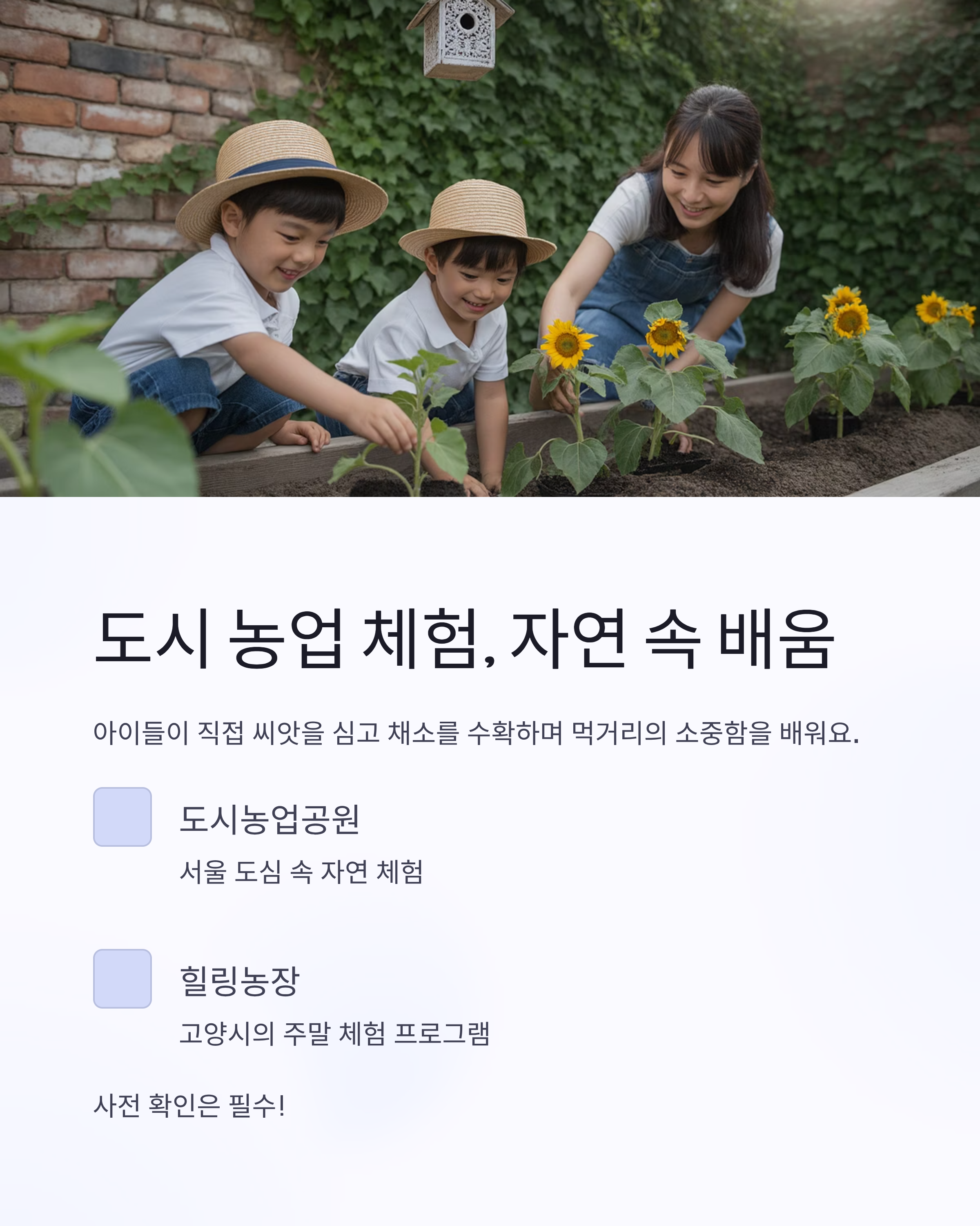 조금 여유가 있다면 도심 속 농업 체험장도 추천해요.
