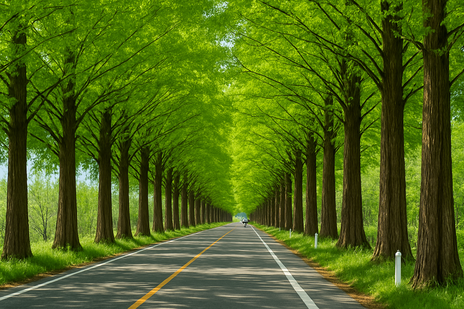 메타세쿼이아 길은 단풍이 물드는 가을뿐만 아니라, 초록이 짙어지는 여름에도 특별한 매력을 지닌 산책 코스입니다. 양쪽으로 펼쳐진 메타세쿼이아 나무들이 만들어내는 길은 마치 숲 속을 걷는 듯한 착각을 불러일으킵니다. 도심에서 멀지 않으면서도 도심의 번잡함을 완전히 벗어날 수 있는 이곳은 일상에서 벗어나 여유로운 호흡을 되찾기에 안성맞춤입니다.