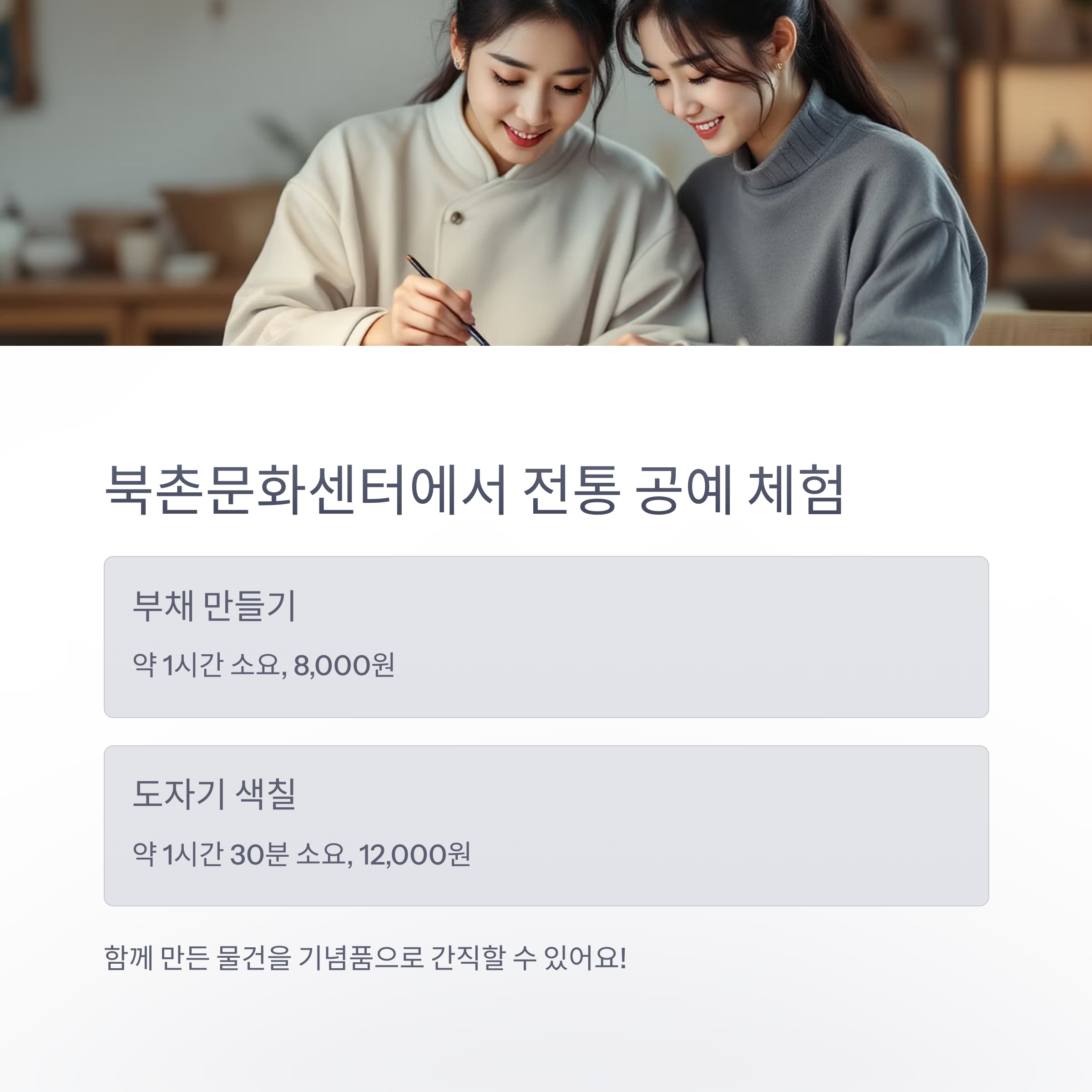| 전통 부채 만들기 | 약 1시간 | 8,000원 |