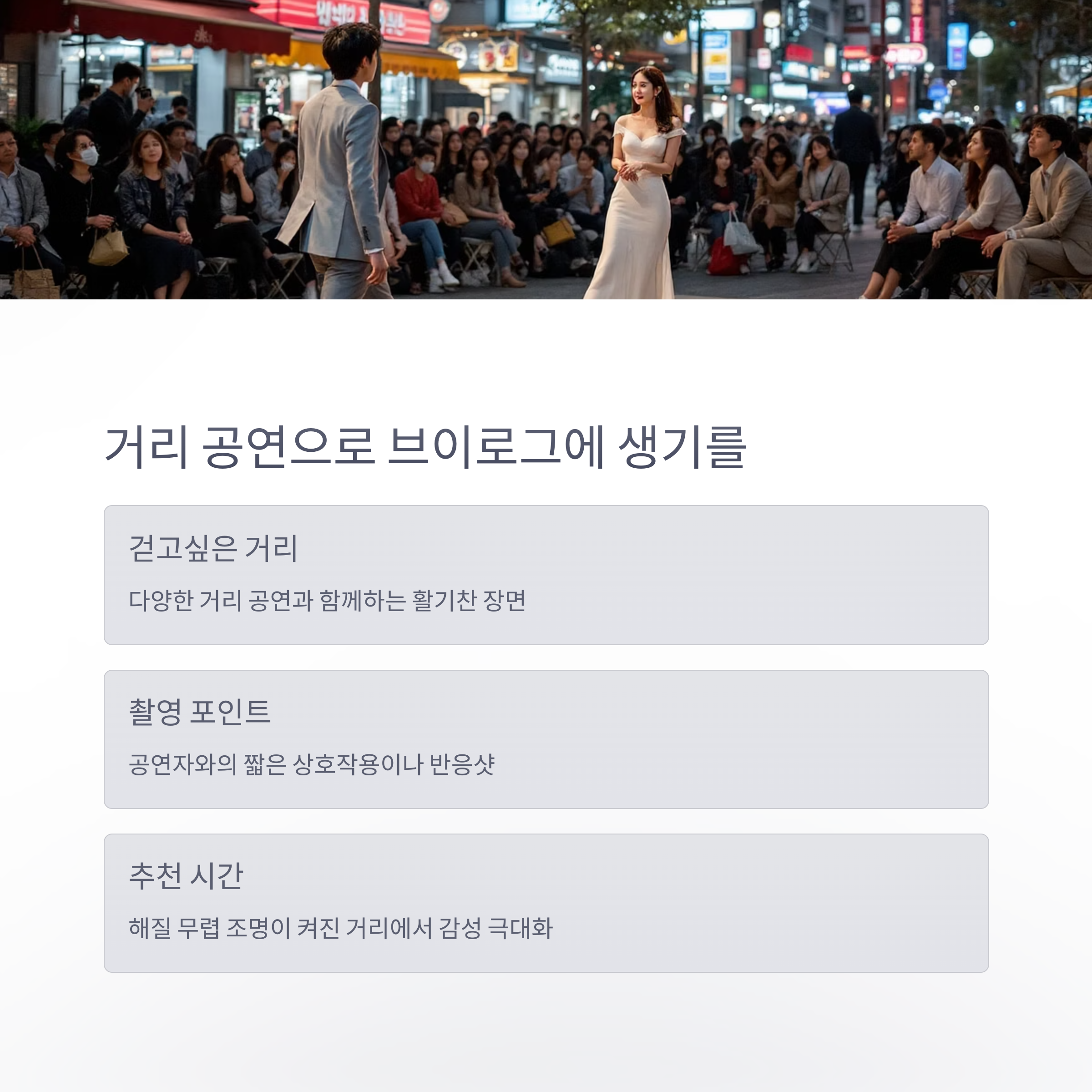 홍대 걷고싶은 거리에서 펼쳐지는 거리 공연을 적극 활용하세요