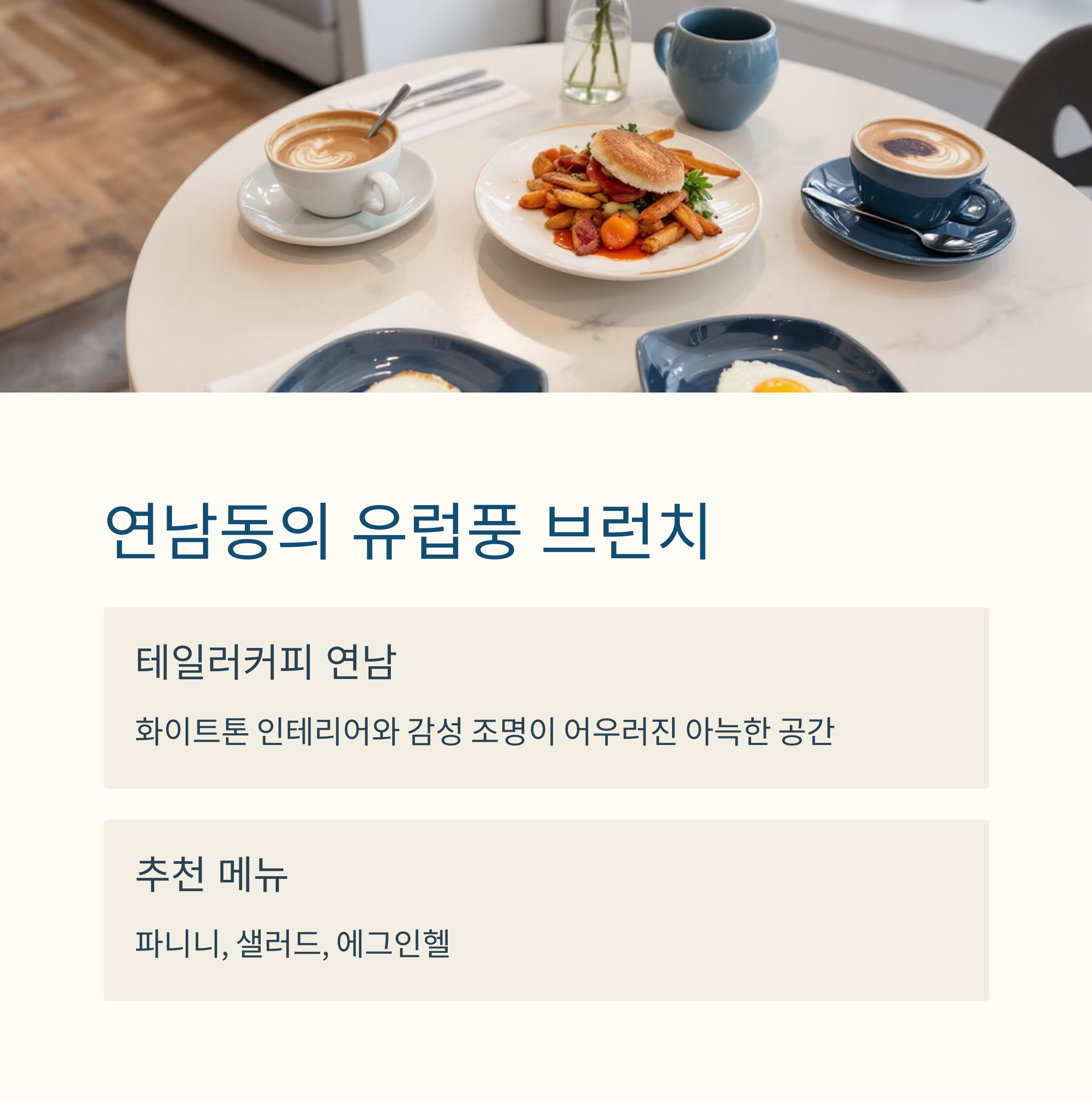 | 주변 명소 | 연남동 카페거리, 홍대 거리, 연트럴파크 |