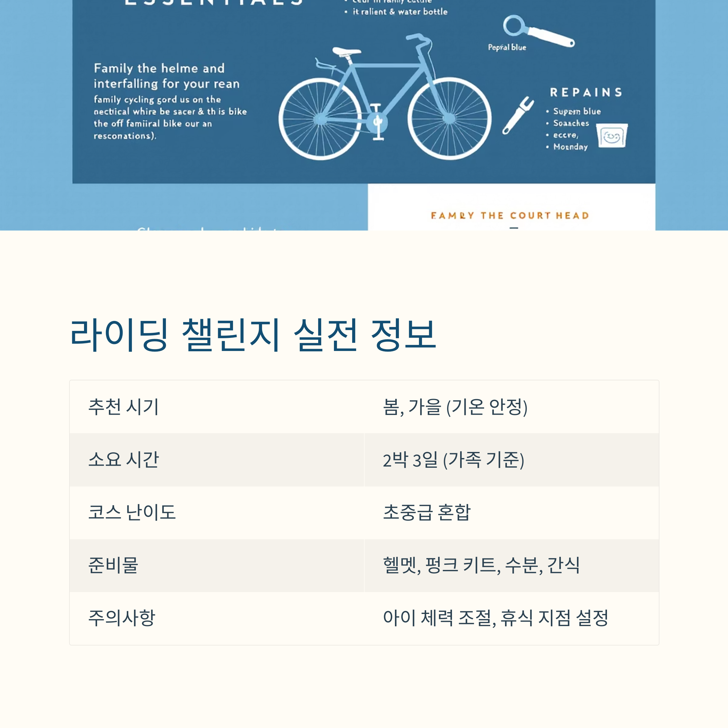 이 글에서는 저희 가족이 직접 도전한 라이딩 코스와 느낀 점,