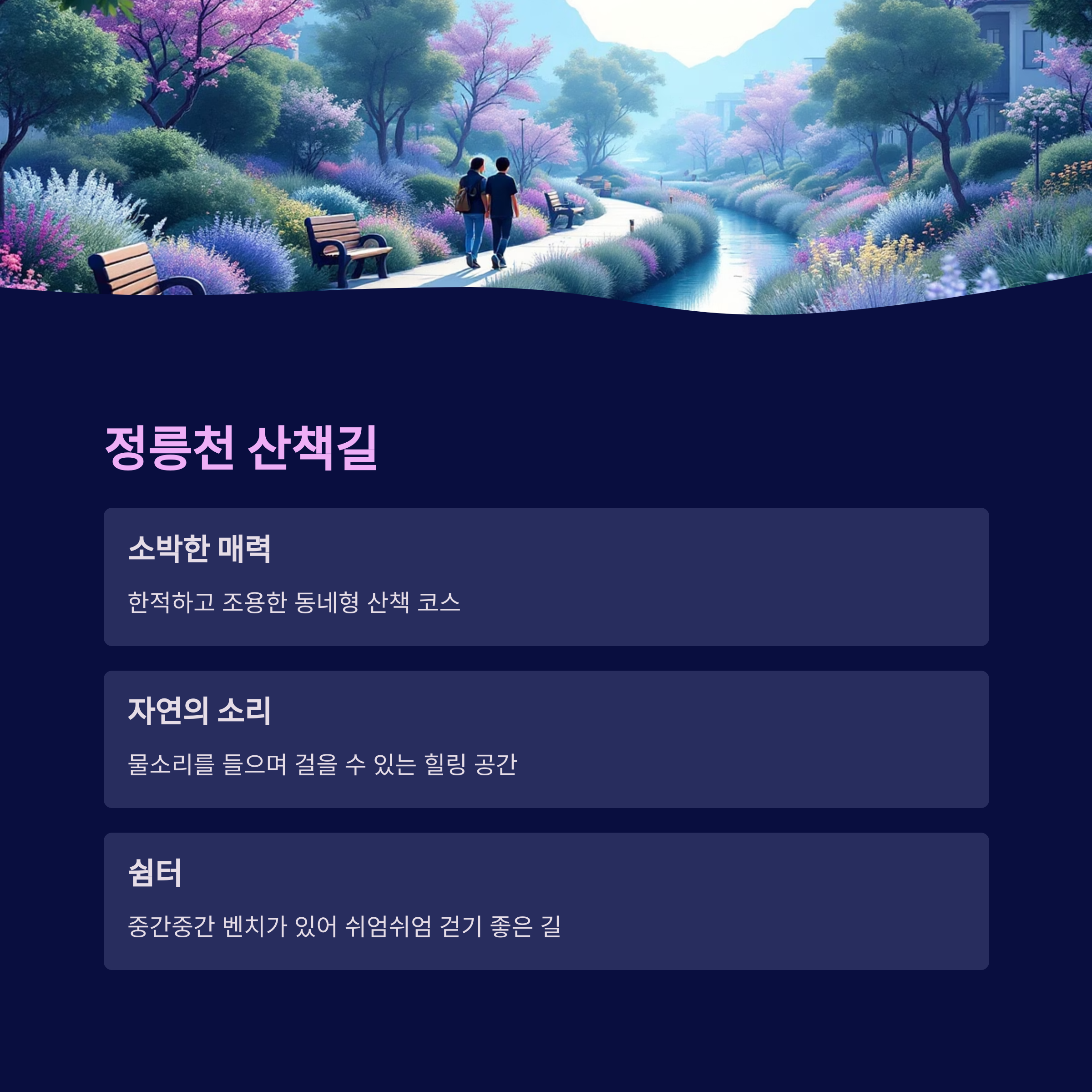 정릉천은 소박하고 한적한 매력의 산책길로,