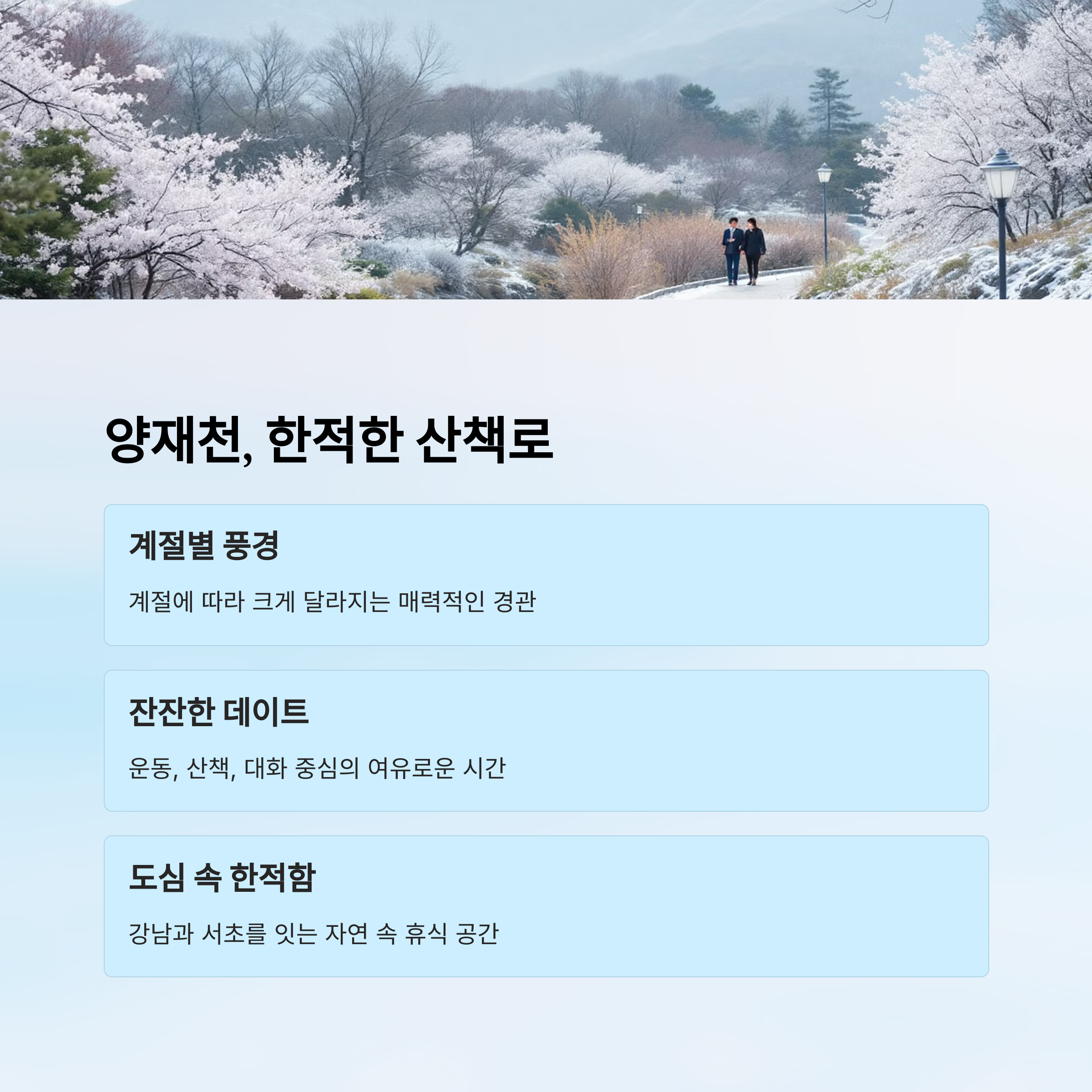 서울 강남과 서초를 잇는 양재천은 계절에 따라 풍경이 크게 달라져