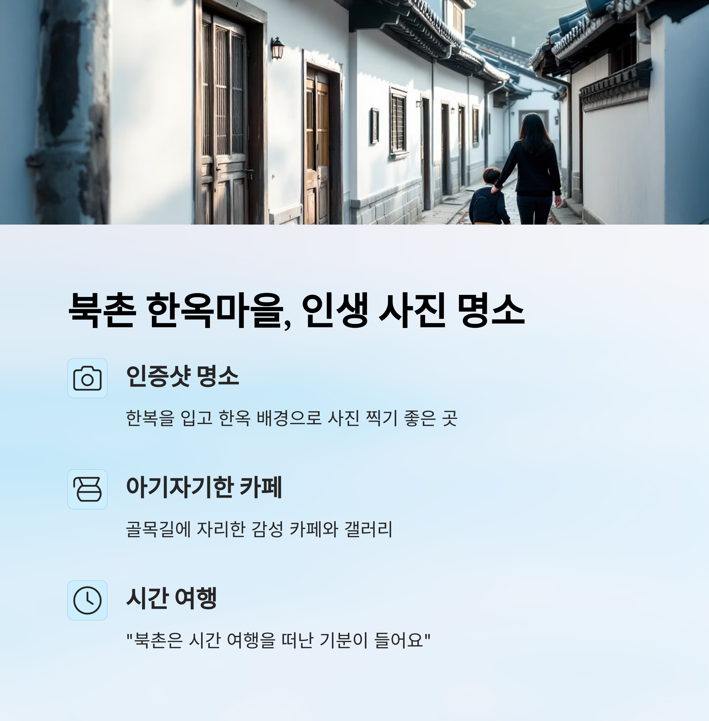 | 북촌한옥마을 | 전통 골목과 한복 체험 | 오전~오후 |