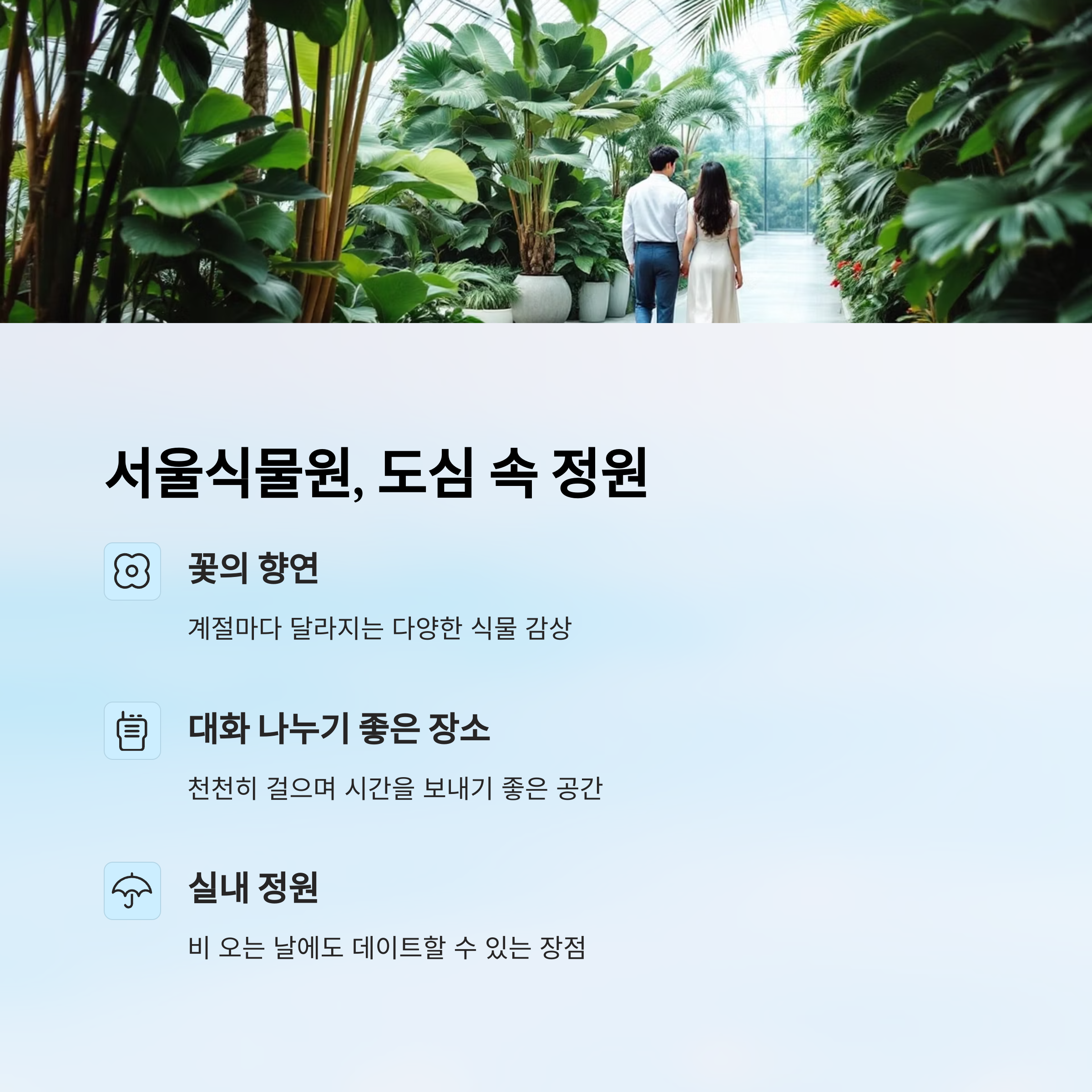 비 오는 날에도 실내 정원이 있어 날씨 걱정 없이 데이트할 수 있습니다