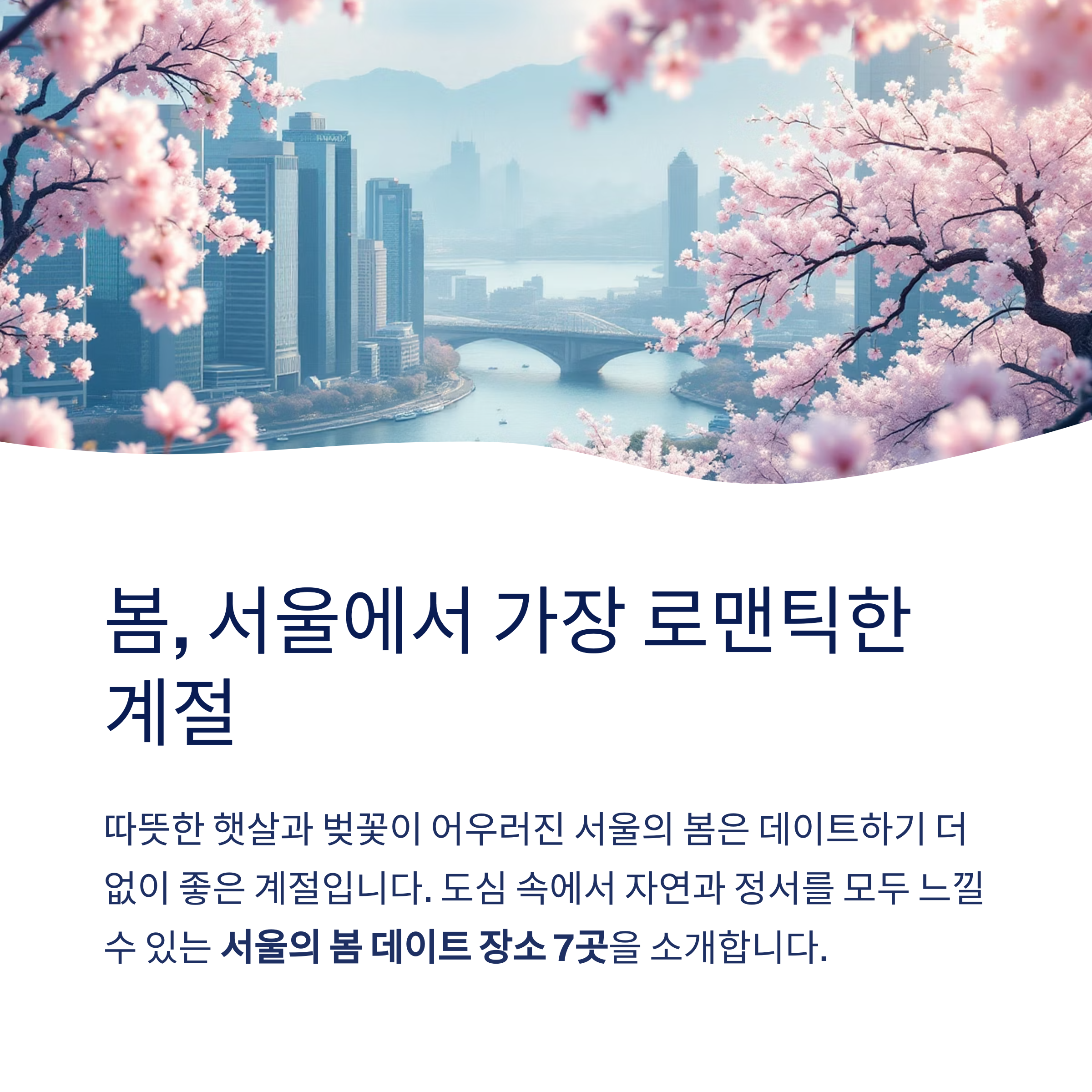 따뜻한 햇살과 벚꽃이 어우러진 서울의 봄은 데이트하기에 더없이 좋은 계절입니다.