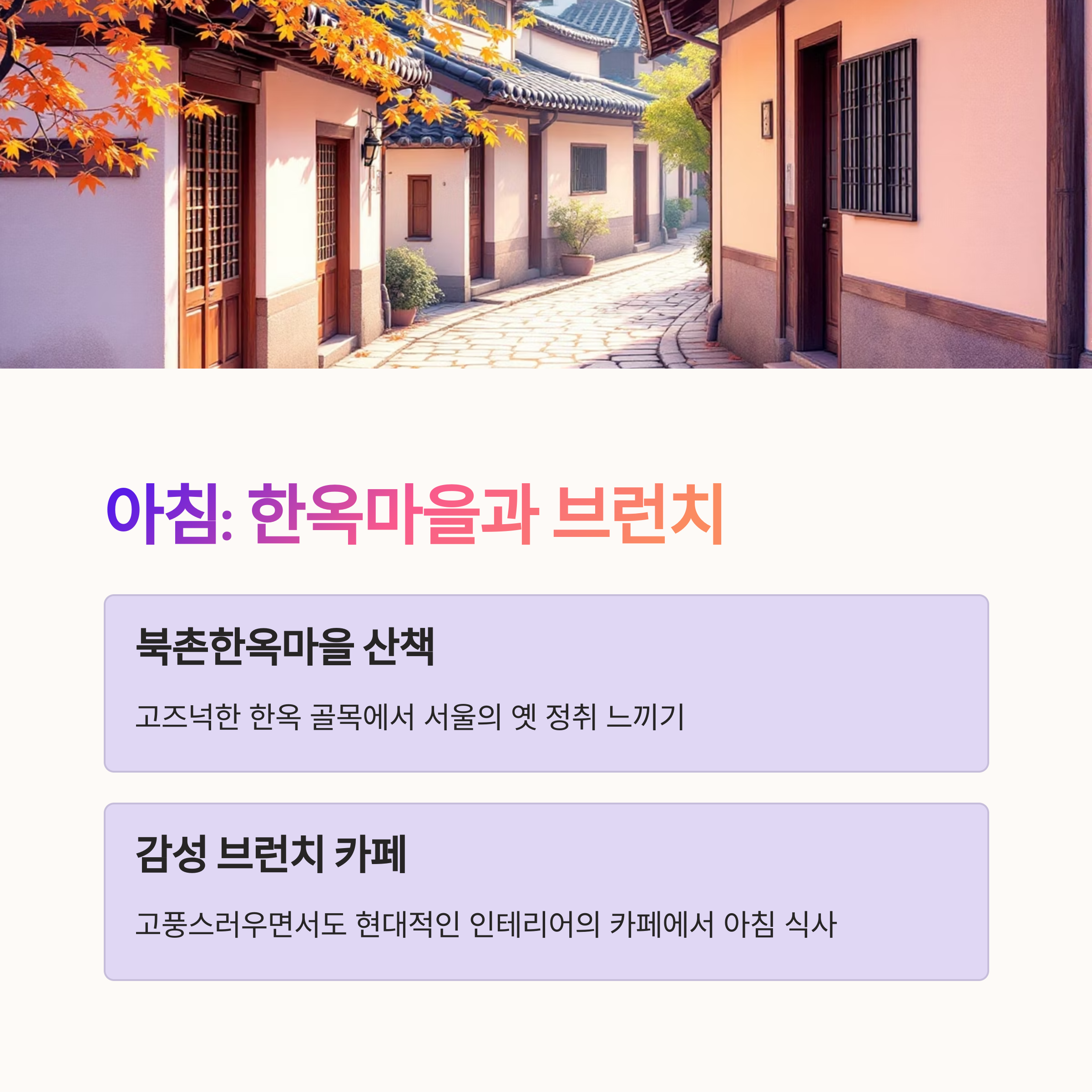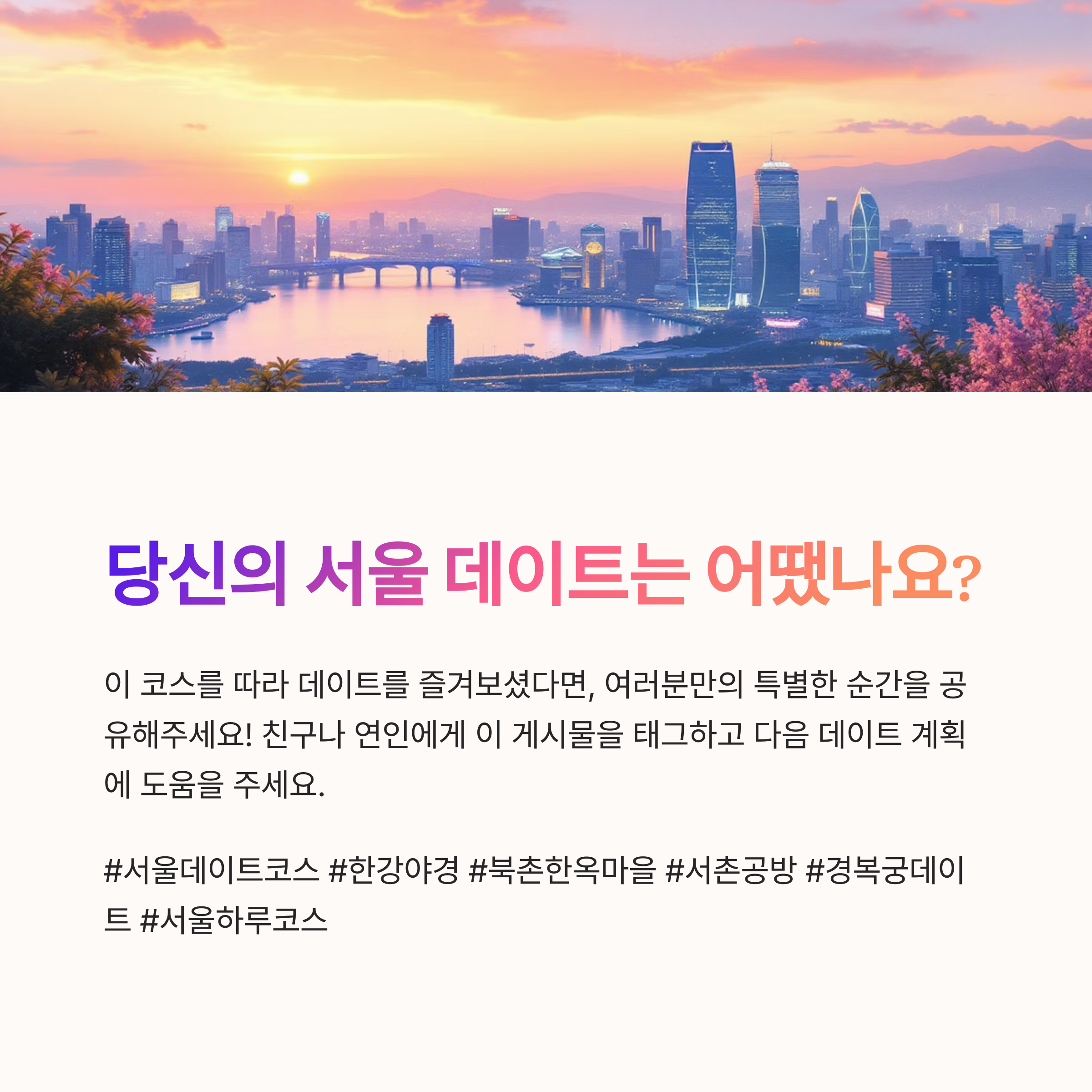 "서울에서 하루 데이트를 계획한다면, 전통과 감성, 자연과 트렌드가 모두 담긴 코스를 선택하는 것이 핵심입니다"