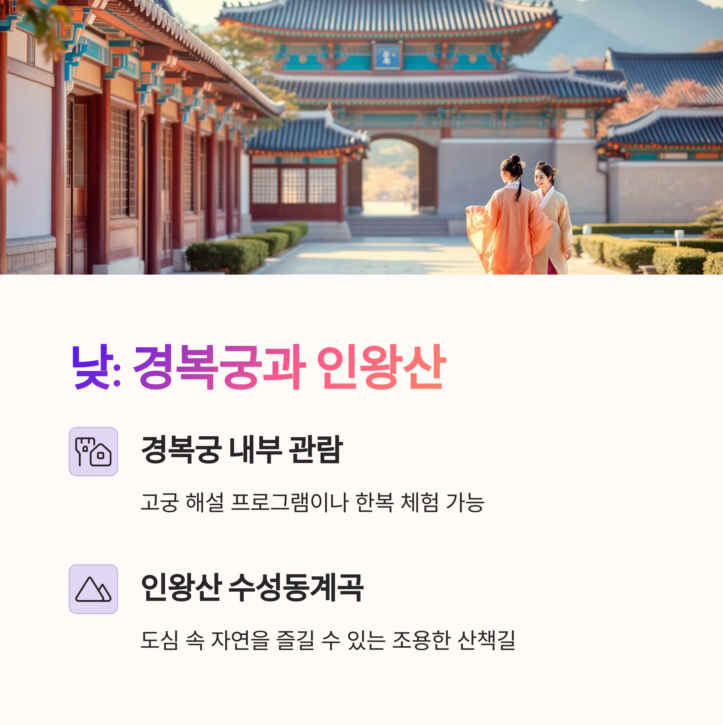 낮: 경복궁 투어와 인왕산 뷰 포인트