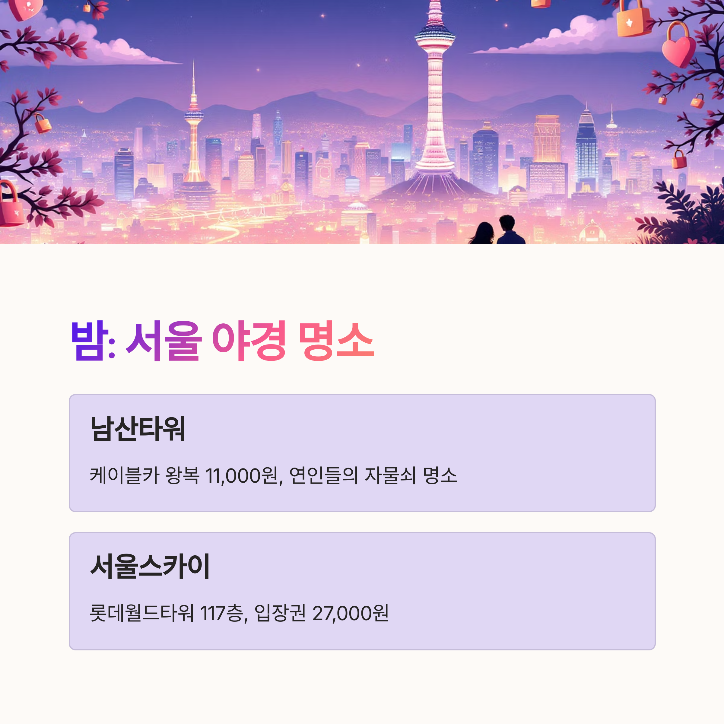 서울의 감성과 풍경을 한 번에 누릴 수 있는 데이트 일정입니다