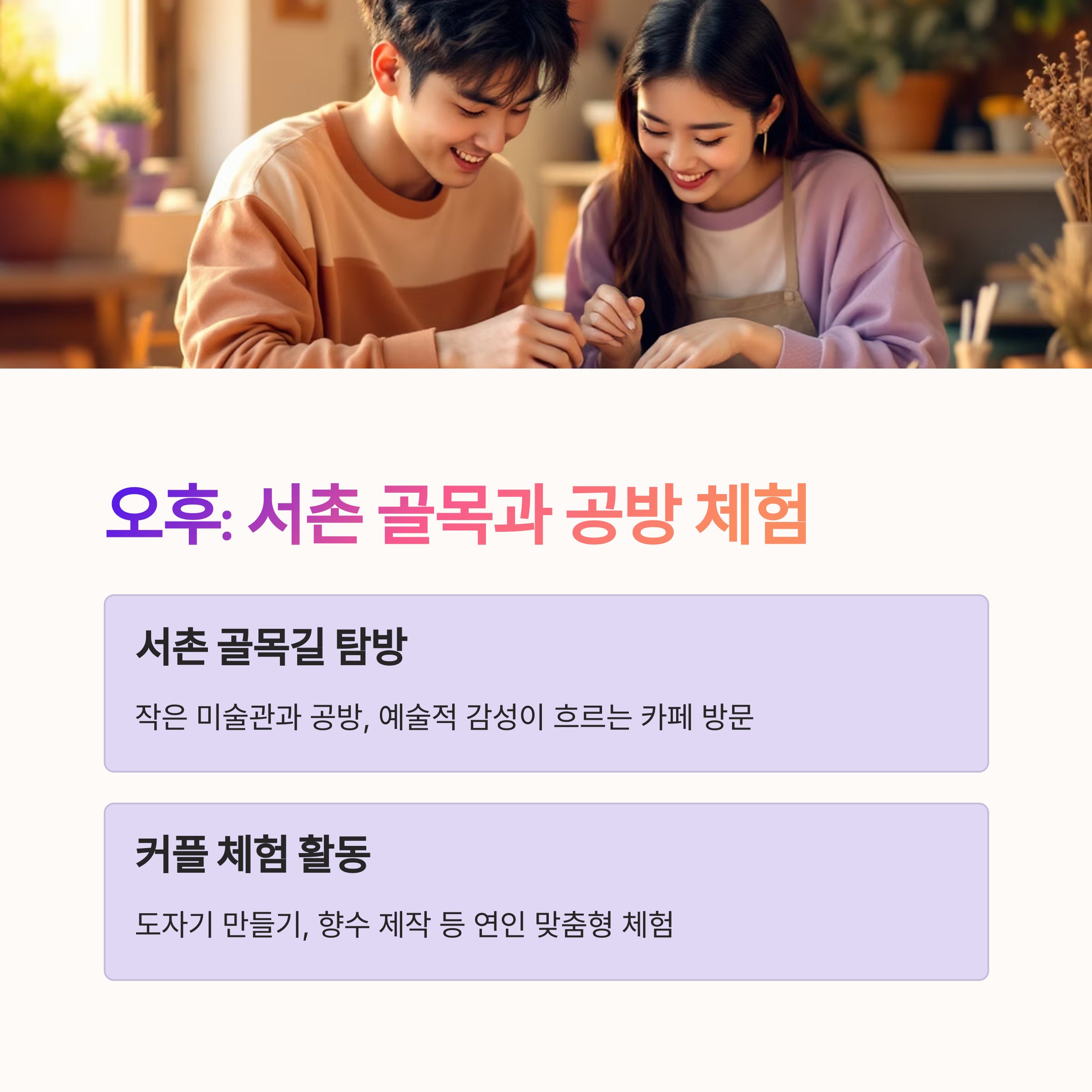 특히 자연, 전통, 트렌디한 감성까지 고루 섞은 일정으로 연인과의 완벽한 하루를 보낼 수 있습니다