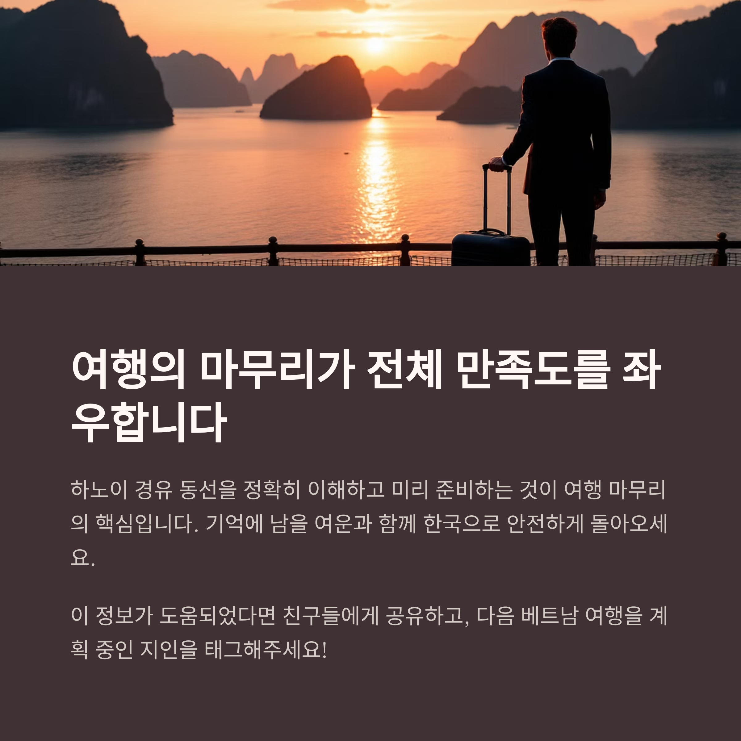 하롱베이의 마지막 날, 하노이를 경유해 귀국하는 날의 이동 동선과 준비 사항을 정리해드립니다.