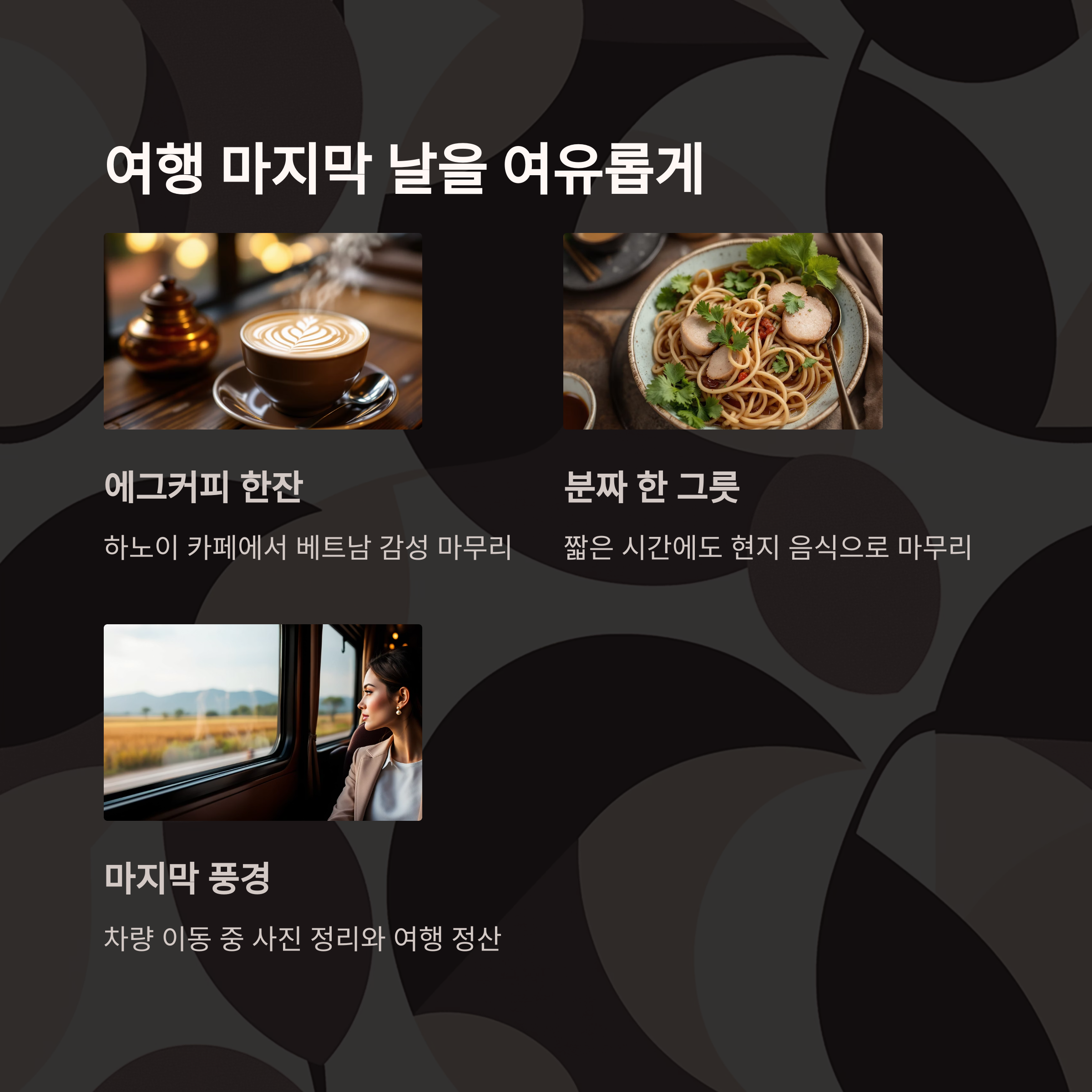 마무리가 깔끔한 여행이 전체 만족도를 높여줍니다