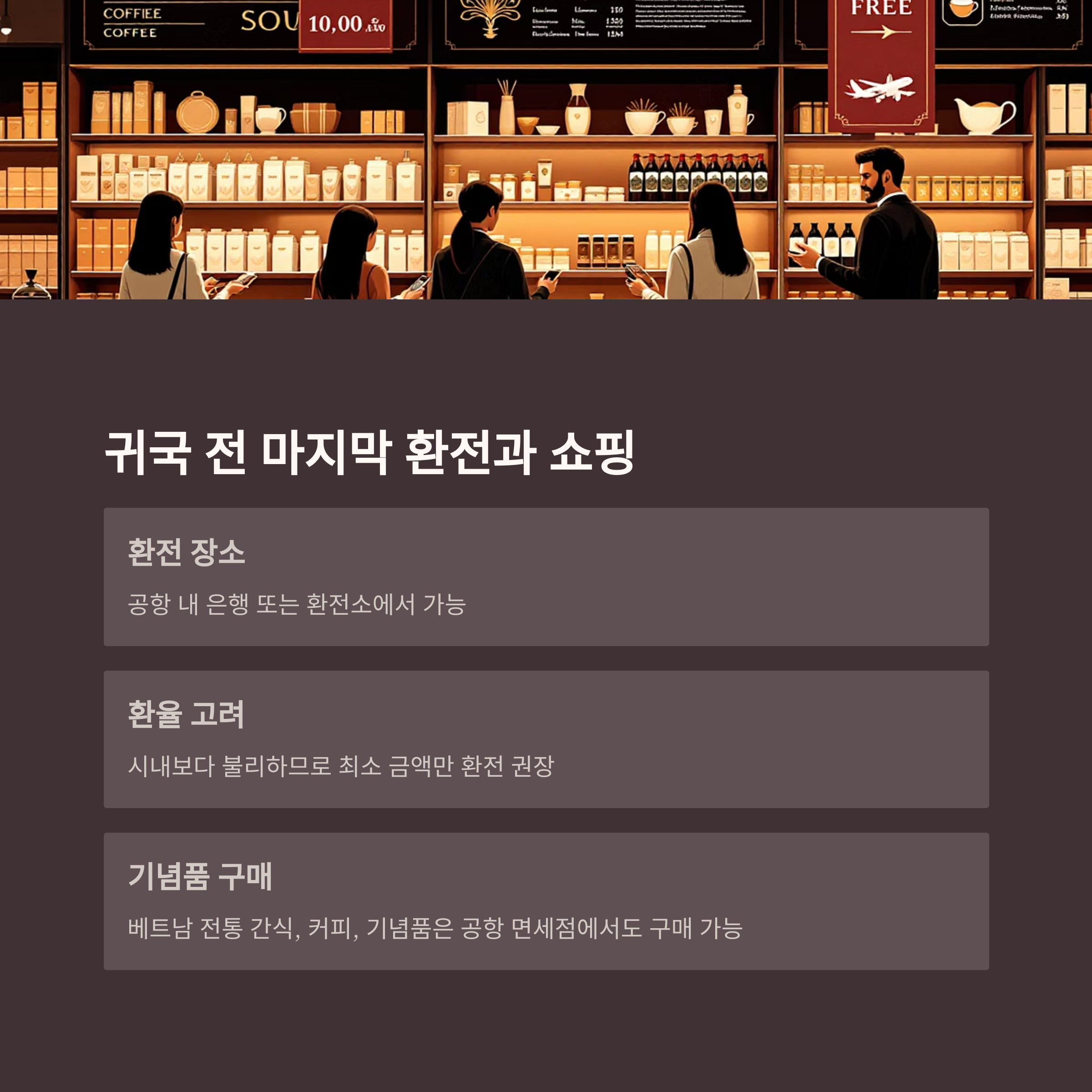 베트남 전통 간식, 커피, 기념품은 공항 면세점에서도 구매 가능하니 무리한 쇼핑은 피하세요
