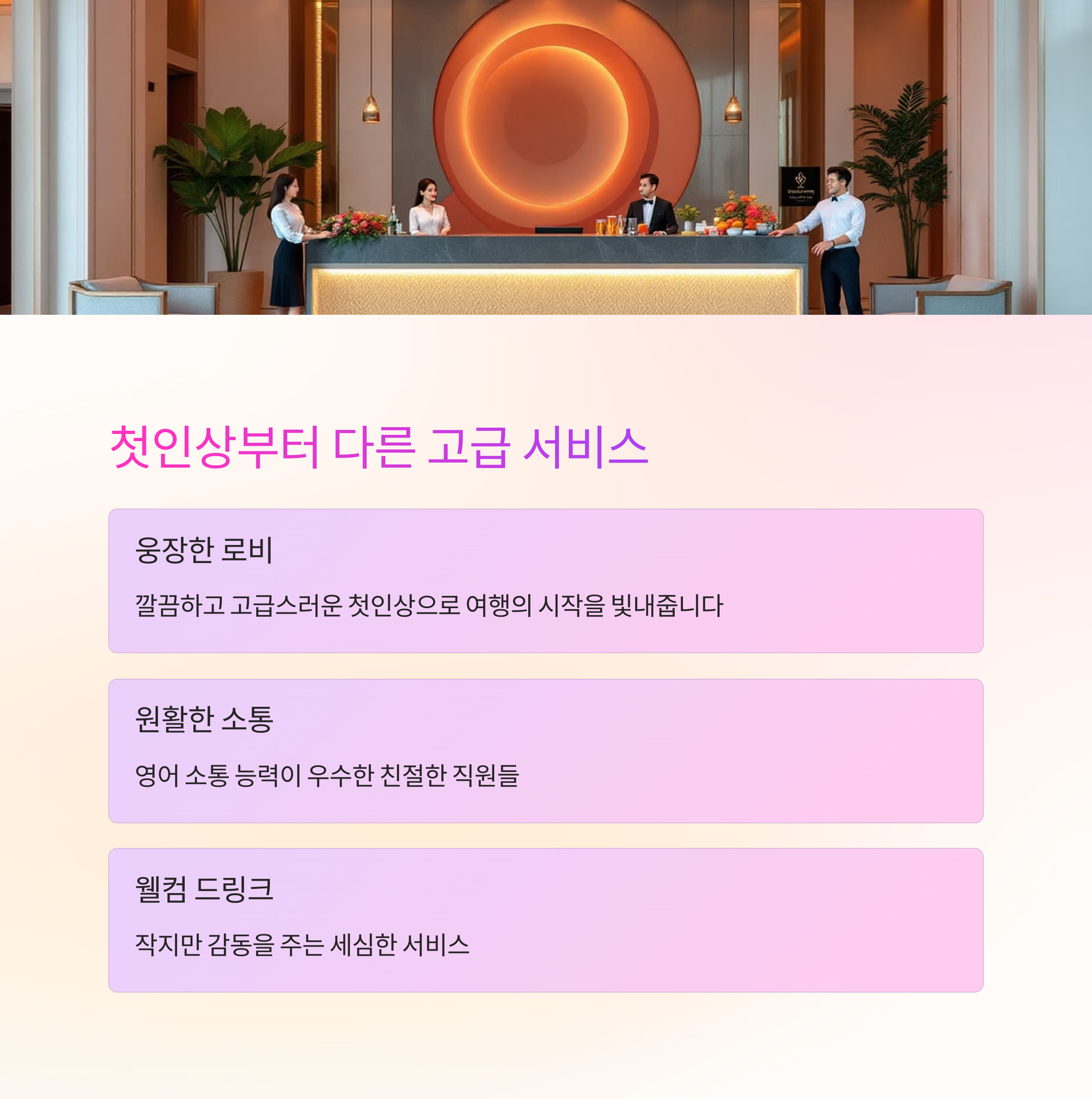 고급스러운 로비와 맞춤형 체크인 서비스