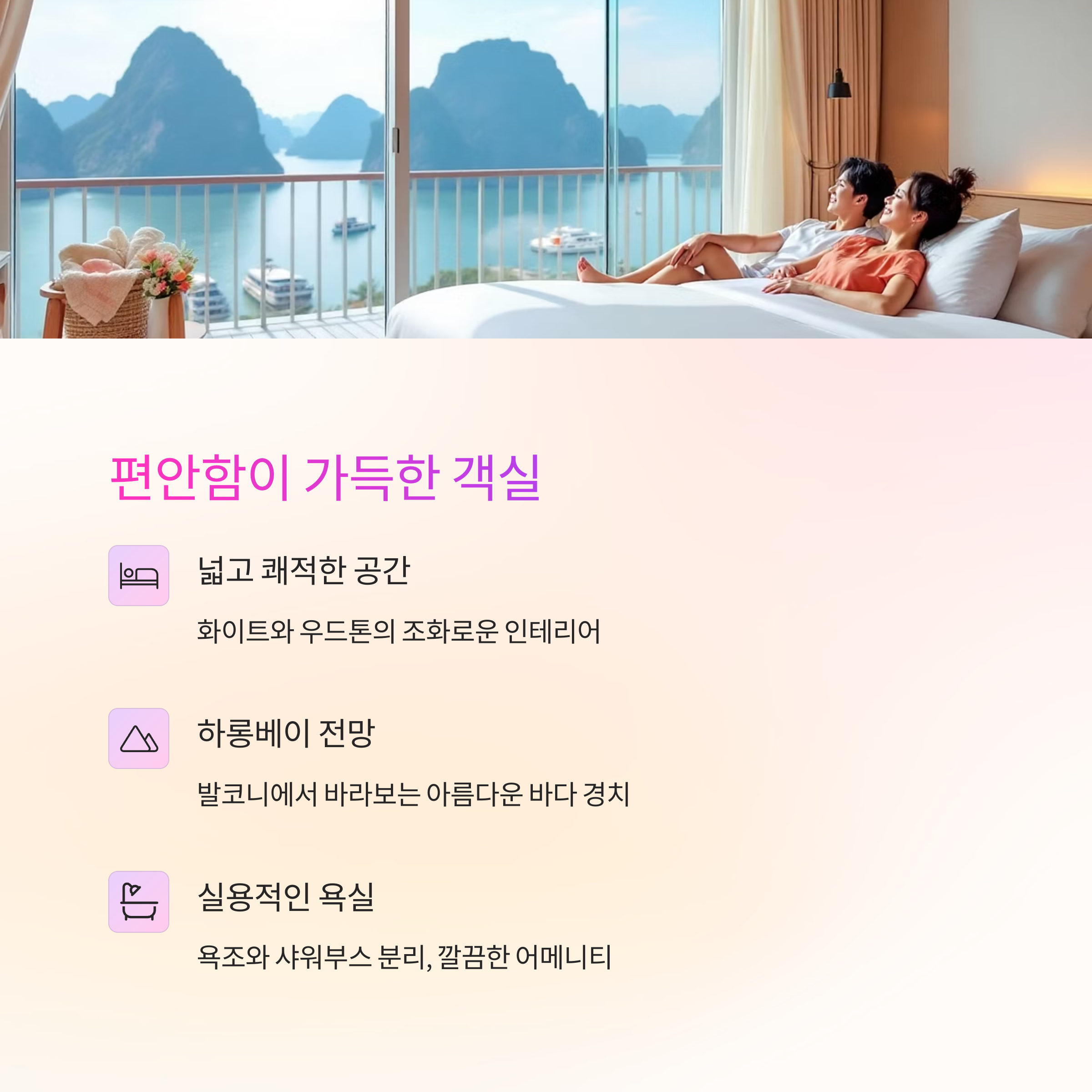 하롱베이의 풍경과 품격 있는 서비스 모두를 누릴 수 있는 최적의 선택지입니다