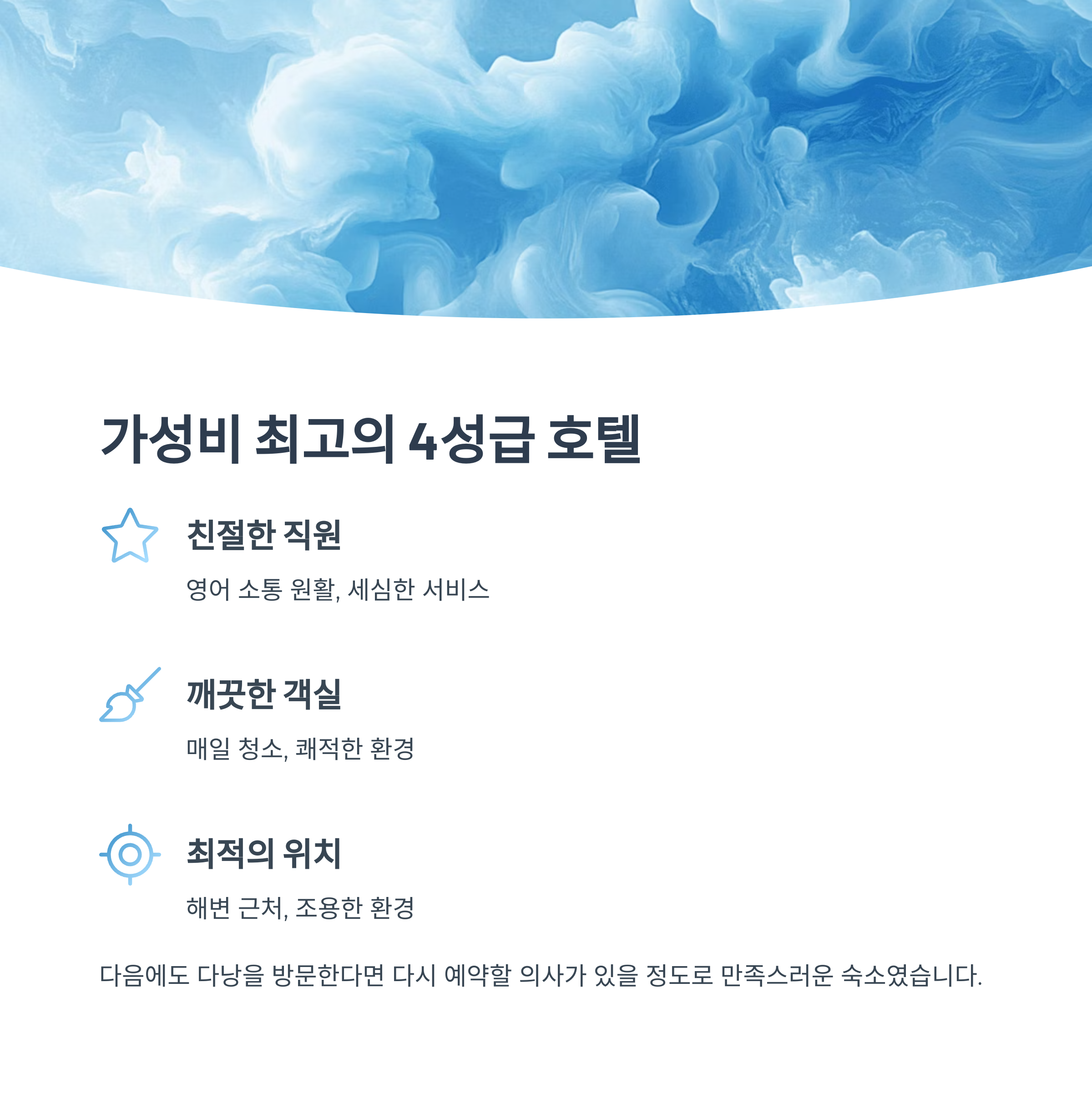 "다음에도 다낭을 방문한다면 다시 예약할 의사가 있을 정도로 만족스러운 숙소였습니다."