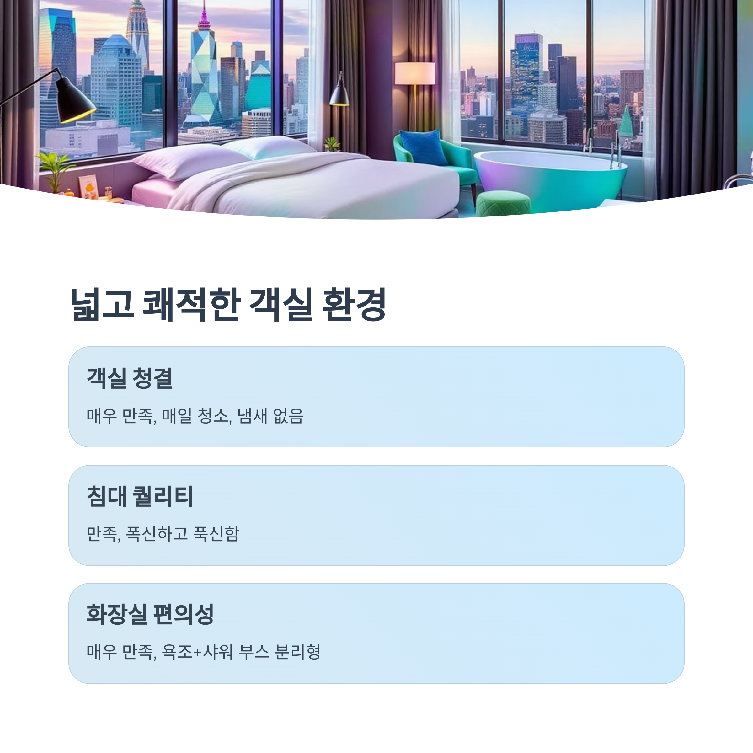 | 객실 청결 | 매우 만족 | 매일 청소, 냄새 없음 |