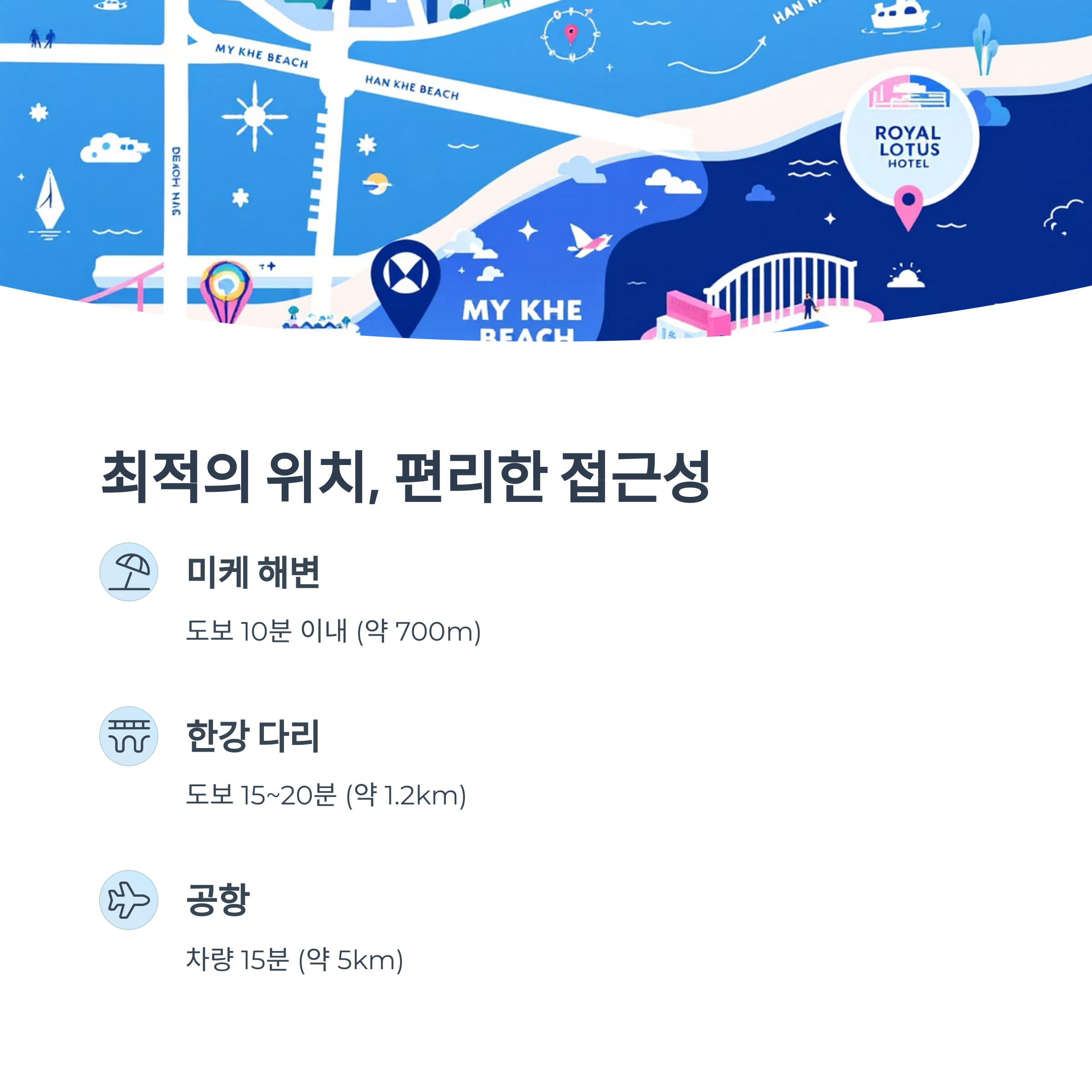 로얄 로터스 호텔은 미케 해변과 도보 10분 이내 거리에 위치해 있어 산책이 용이합니다.