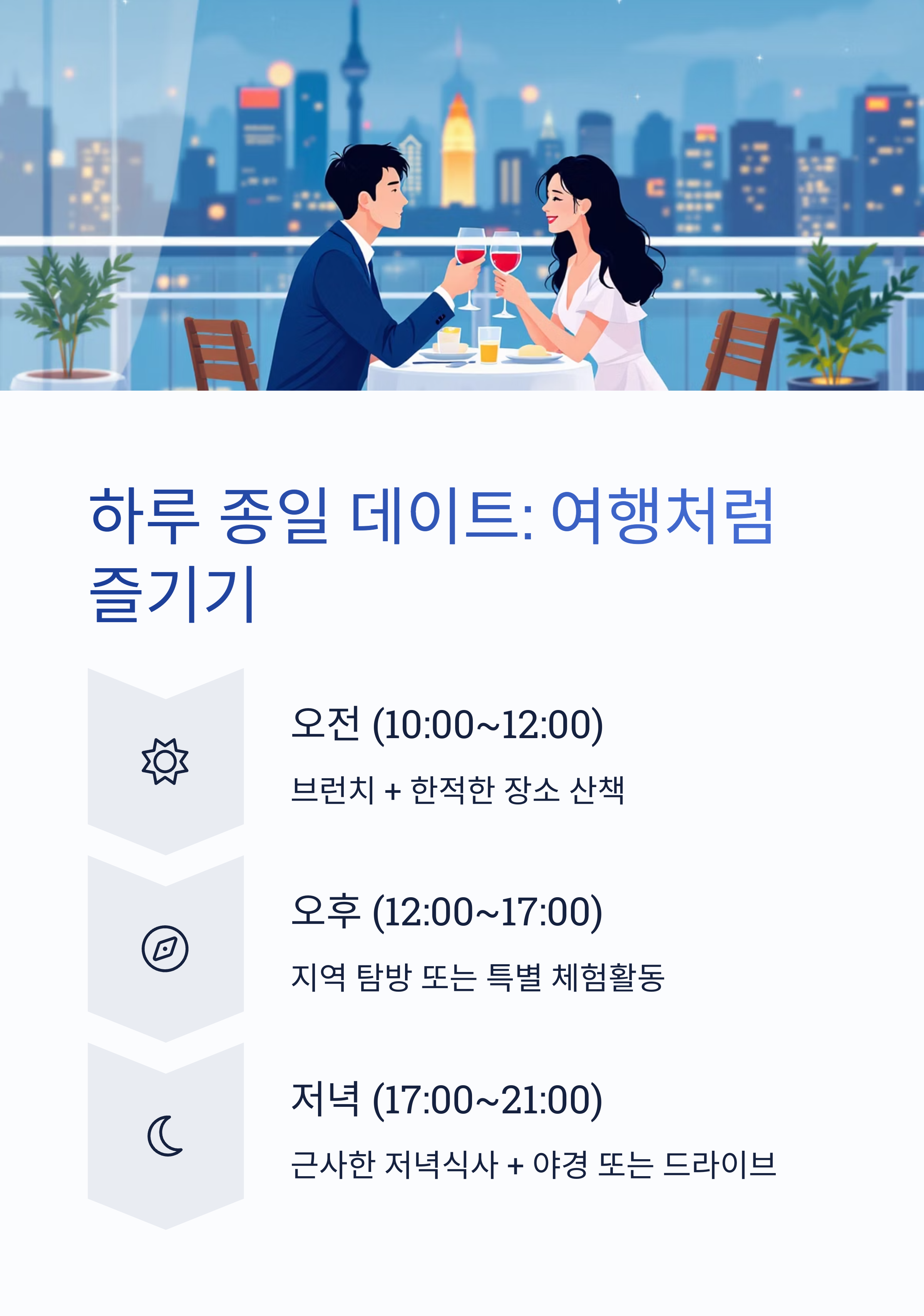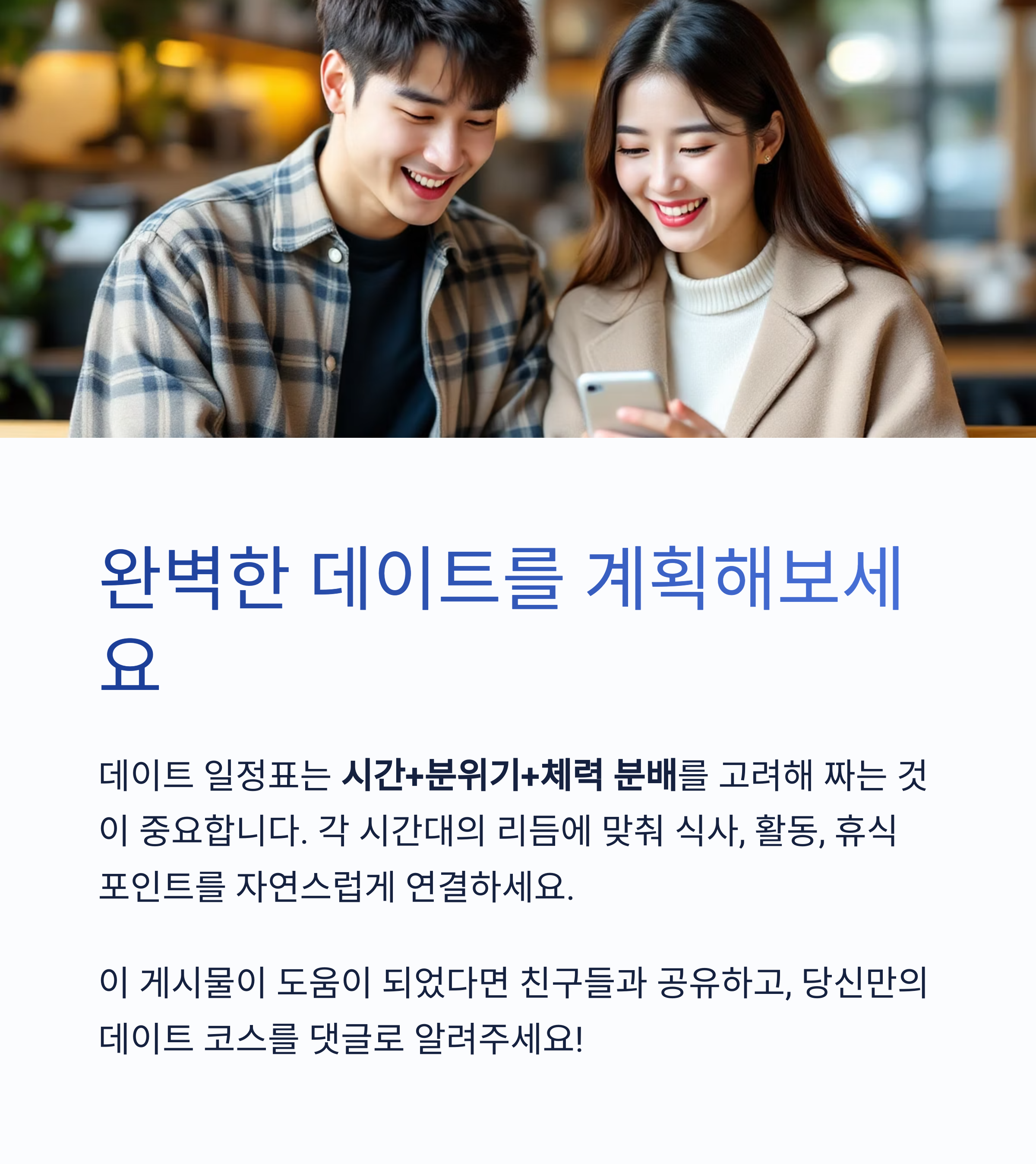 데이트 일정표는 시간+분위기+체력 분배를 고려해 짜는 것이 중요합니다.