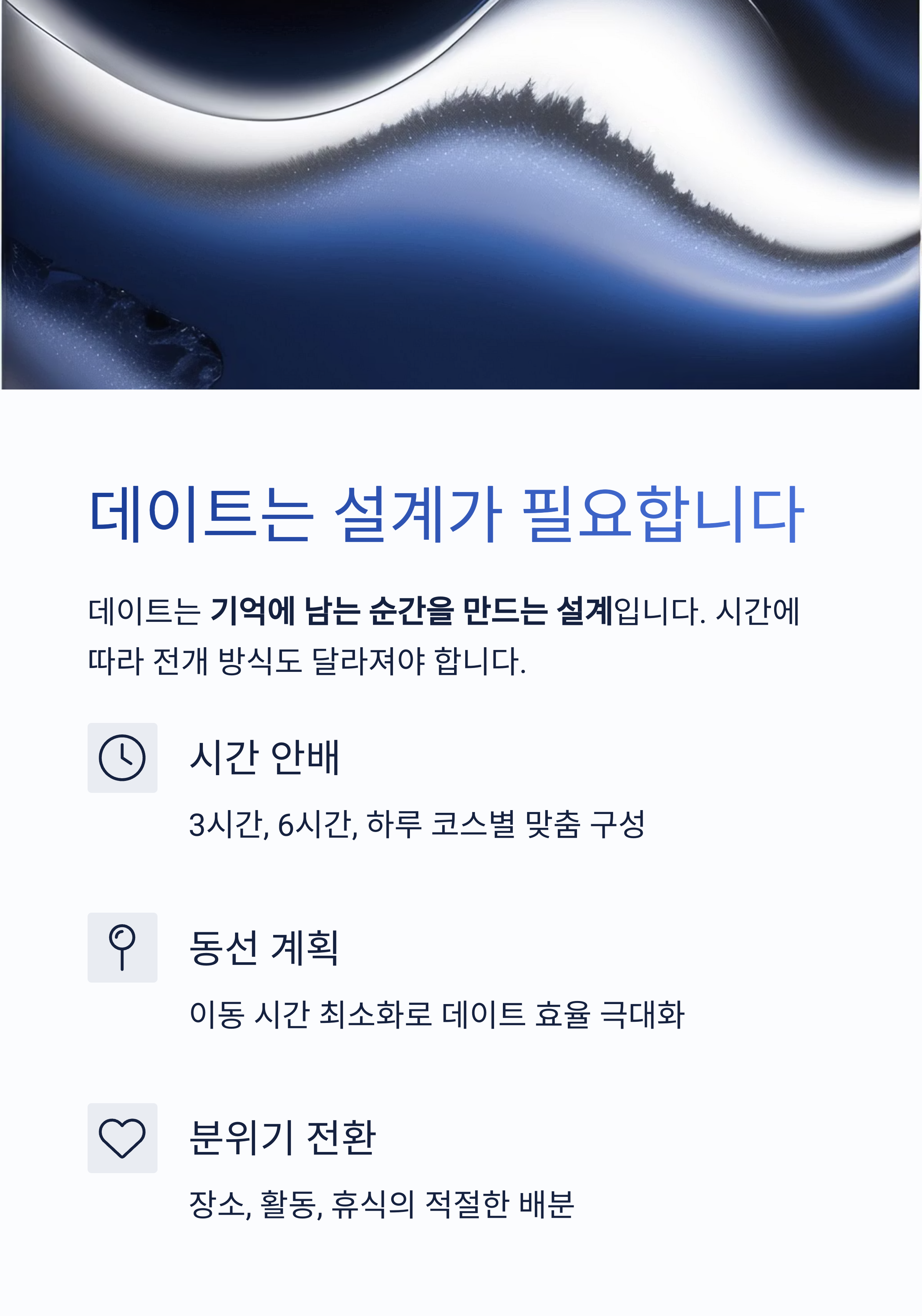 데이트는 단순한 시간 소비가 아닌 기억에 남는 순간을 만드는 설계입니다.