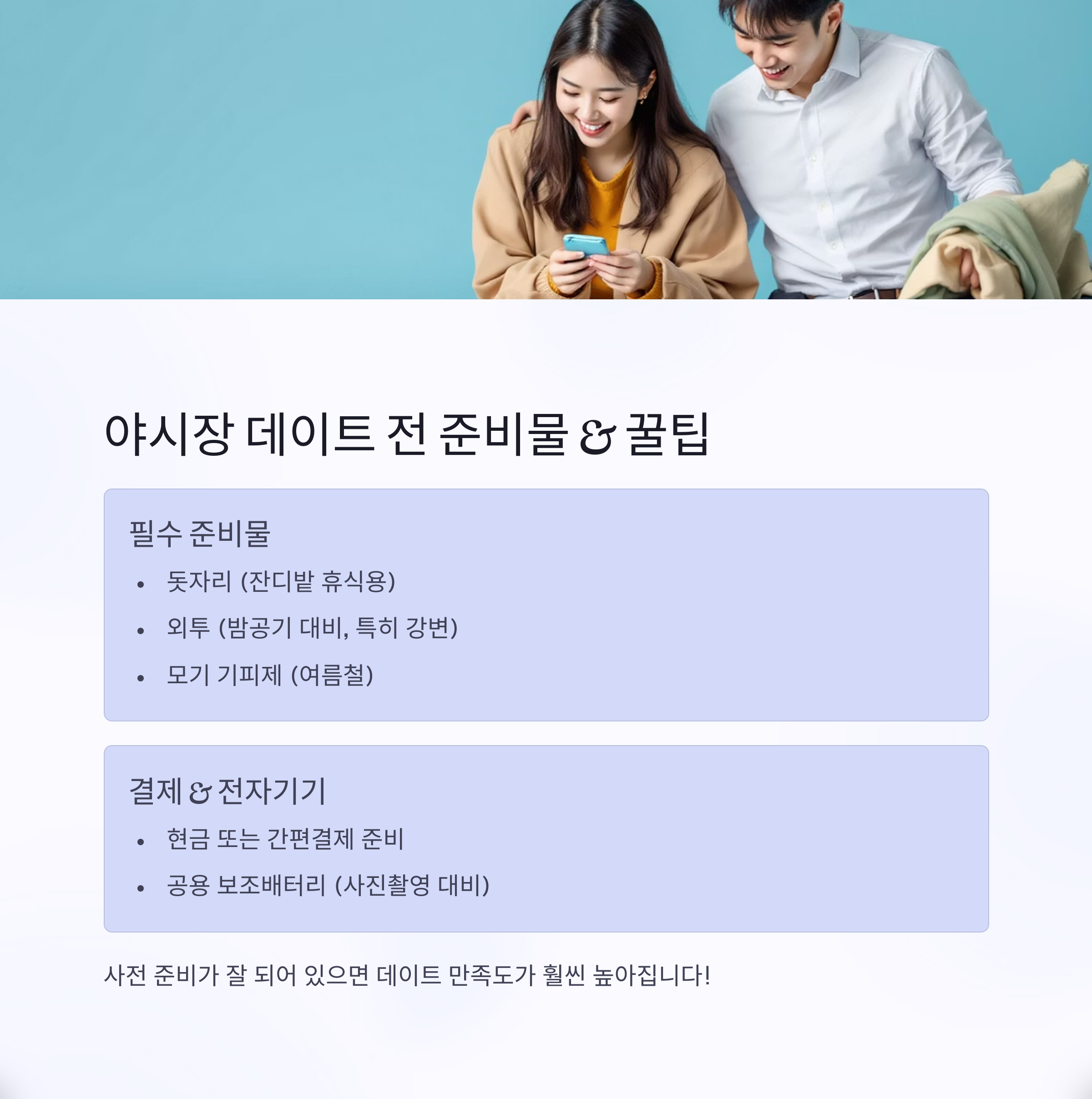 이 흐름을 기억하면 대부분의 야시장에서 자연스럽고 만족도 높은 데이트가 가능합니다.