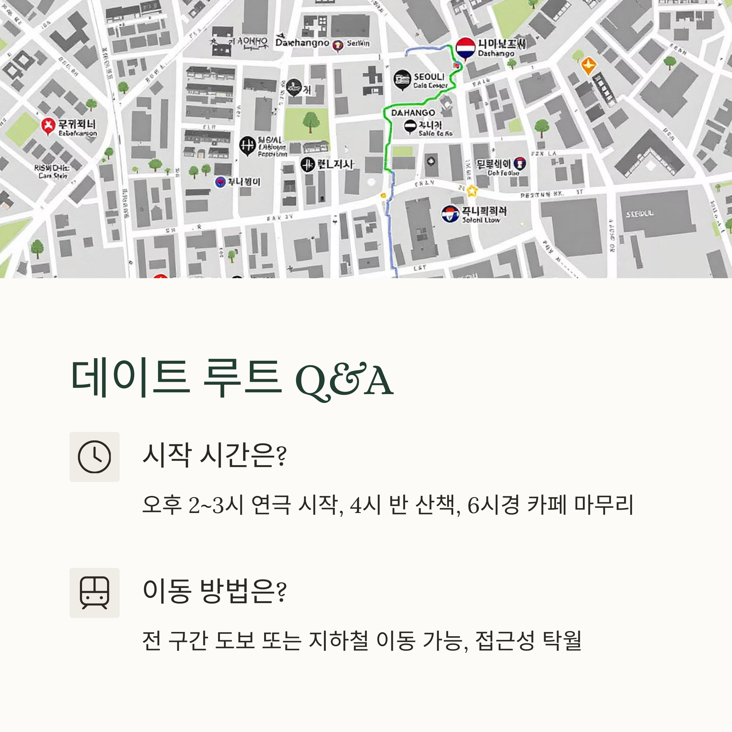 → 전 구간 도보 또는 지하철 이동 가능하며