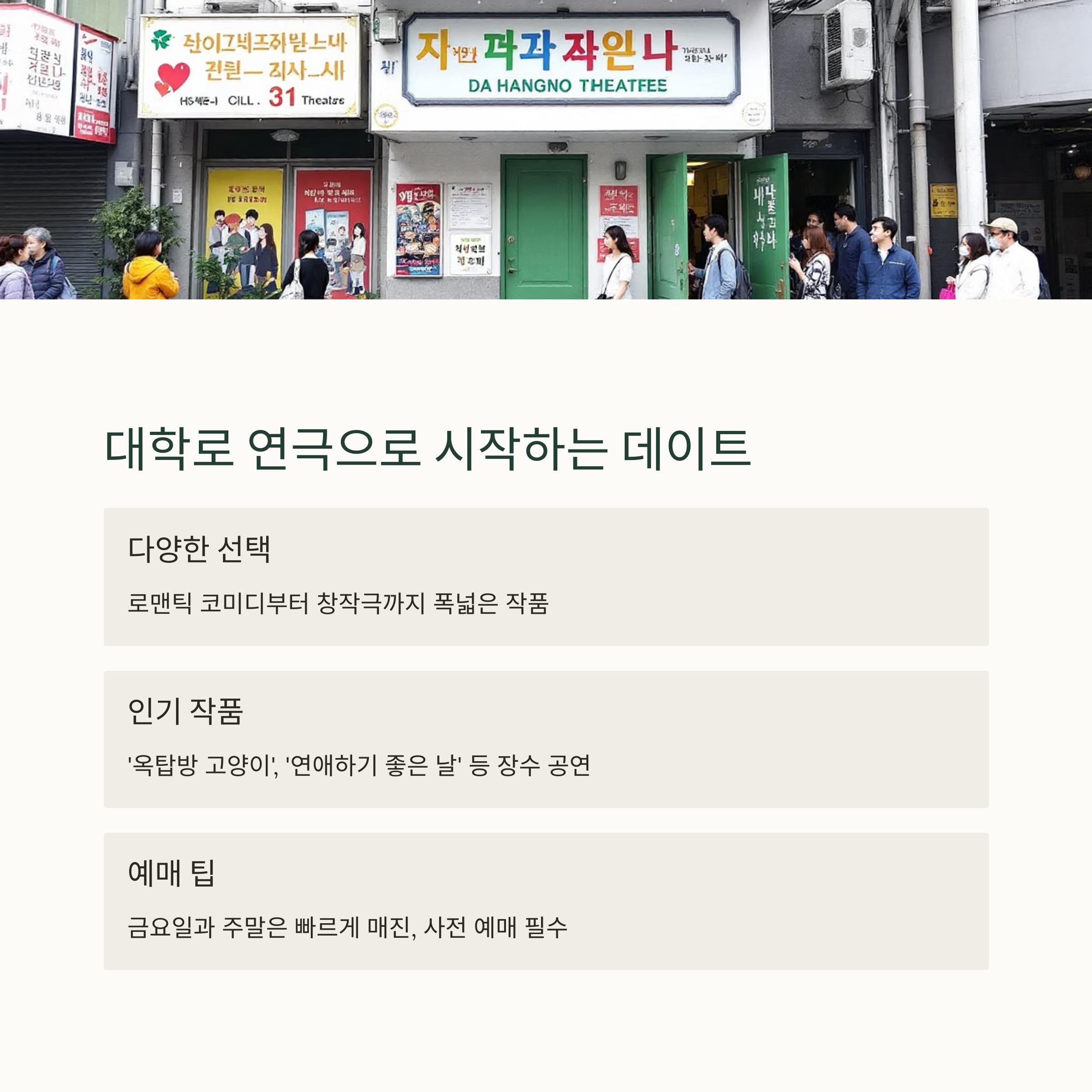 서울에서 연극의 중심지라면 단연 대학로입니다