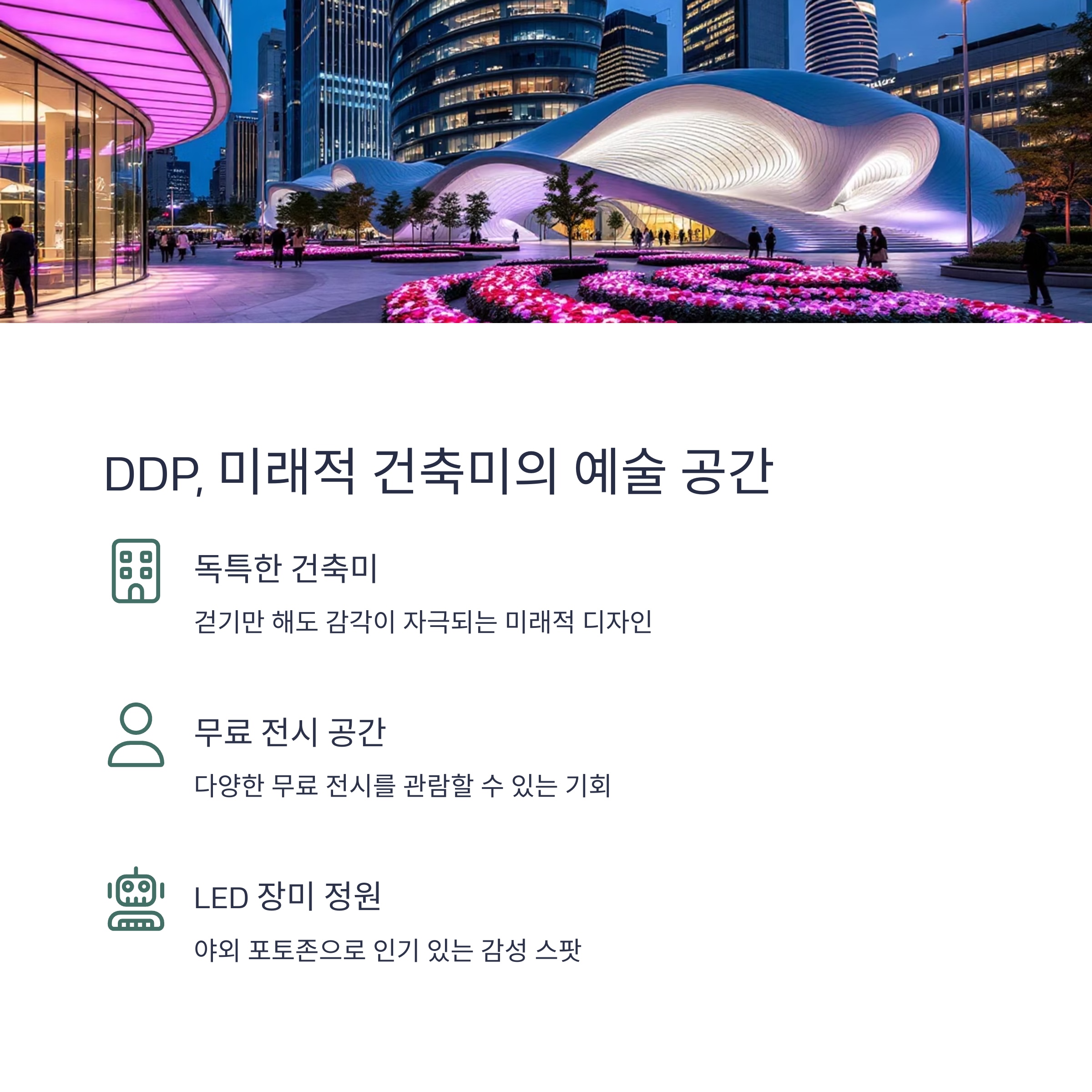 DDP는 걷기만 해도 감각이 자극되는 데이트 명소입니다.
